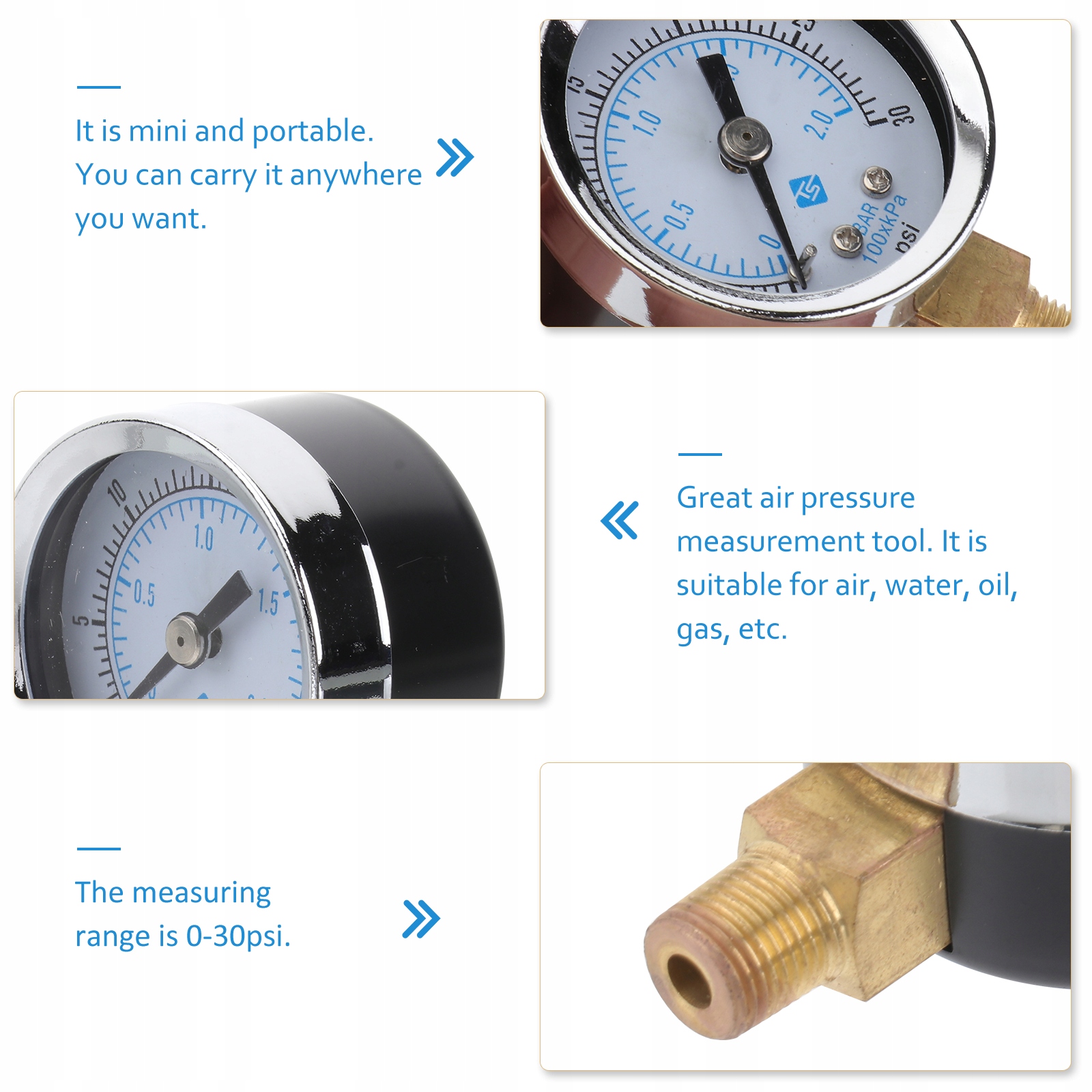 ✅Этот товар изготовлен из материала высочайшего качества, что обеспечивает его прочное и длительное использование. Это мини и портативный. Вы можете носить его где угодно. Диапазон измерения составляет 0–30 фунтов на квадратный дюйм. Отличный инструмент для измерения давления воздуха. Подходит для воздуха, воды, масла, газа и т. д.