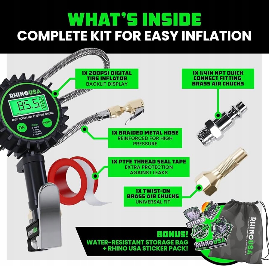 Выберите манометр для шин Rhino USA на 200 фунтов на квадратный дюйм, потому что он отличается исключительной производительностью, точностью и удобным дизайном. Доверьтесь Rhino USA, чтобы обеспечить надежность и удобство, необходимые для выполнения всех задач по обслуживанию шин.