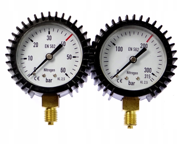 Комплект из 2-х манометров [баллон и манометр рабочего давления], предназначенных для редуктора НИТРИЗ. Манометры подходят к большинству редукторов, продаваемых на польском рынке. Максимальное давление на входе и выходе отмечено красной линией на манометрах.