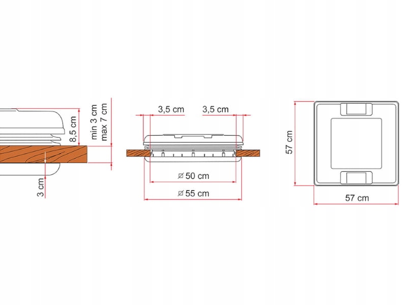 - внешние размеры внешней части: 570х 570 мм,