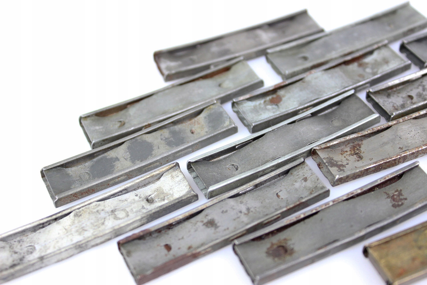 Оригинальные 16 лодок-чердаков/погрузчиков для K98 и производных. Лодки производства Германии, изготовлены из оцинкованной стали (одна из латуни). Все дополнено внутренними пружинами, отмеченными годами 1936-1940. Различные этикетки. Цена за все 16 штук.