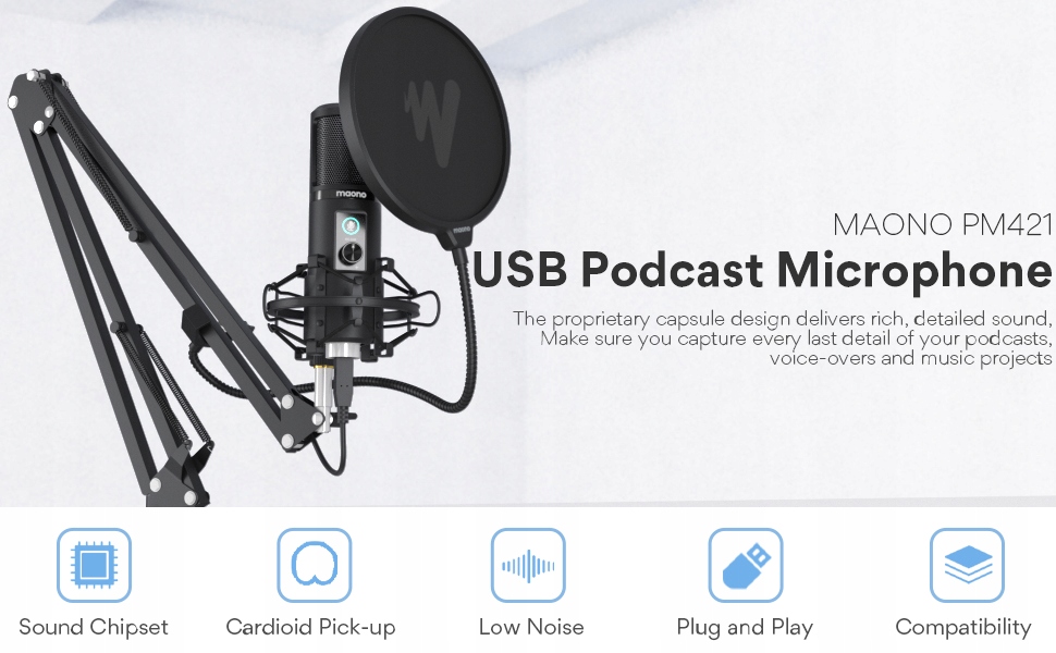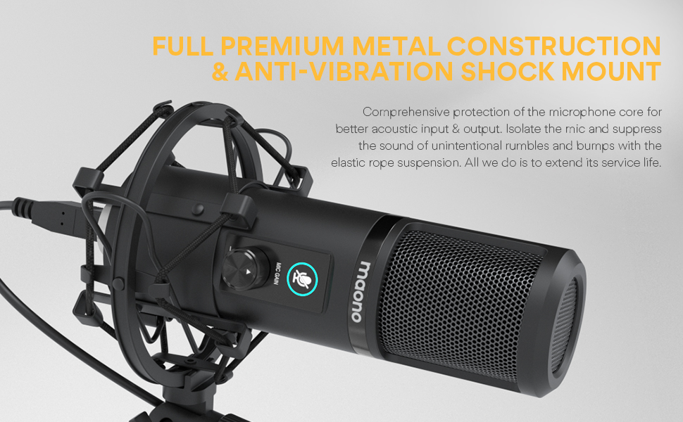 Maoni Au-PM421 USB-конденсатор микрофон с сердечным преобразователем, 192 кГц/ 24 бит, с возможностью молчания с одним прикосновением и ручкой регулировки мощности, для передачи передачи, записи видео на YouTube, игры