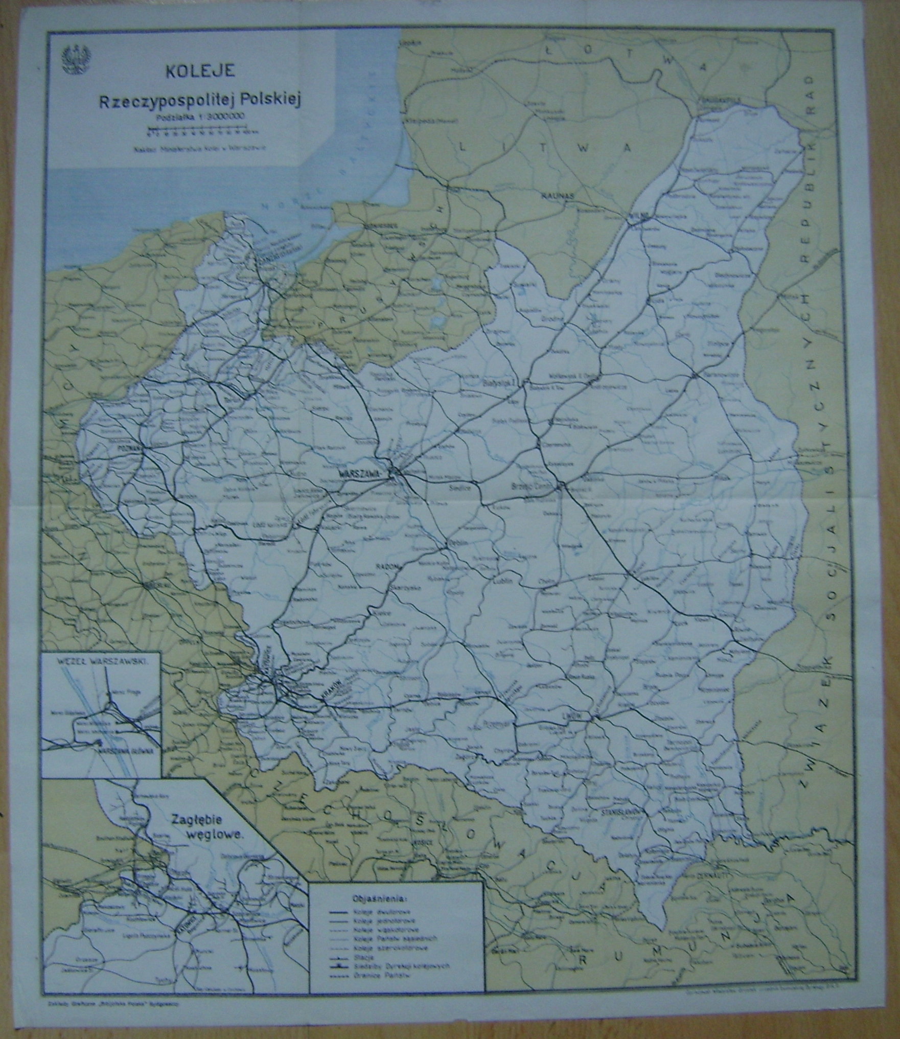 MAPA -KOLEJE RZECZYPOSPOLITEJ POLSKIEJ -wyd.lata 30-te