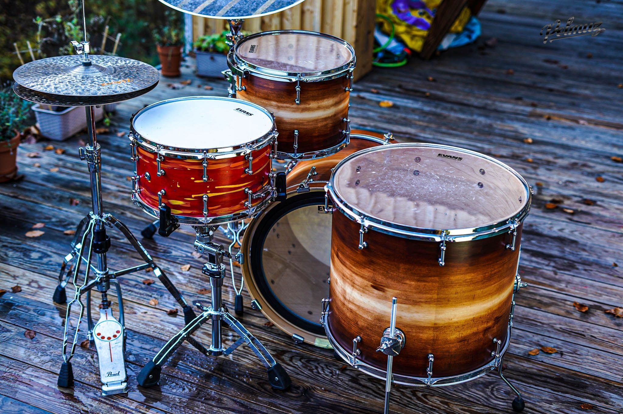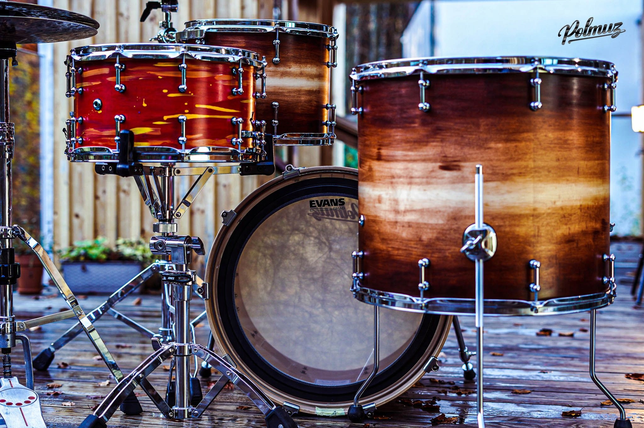 Матовая отделка барабанов polmuz дает каждому набору уникальный вид и необычный звук. Применяется лак