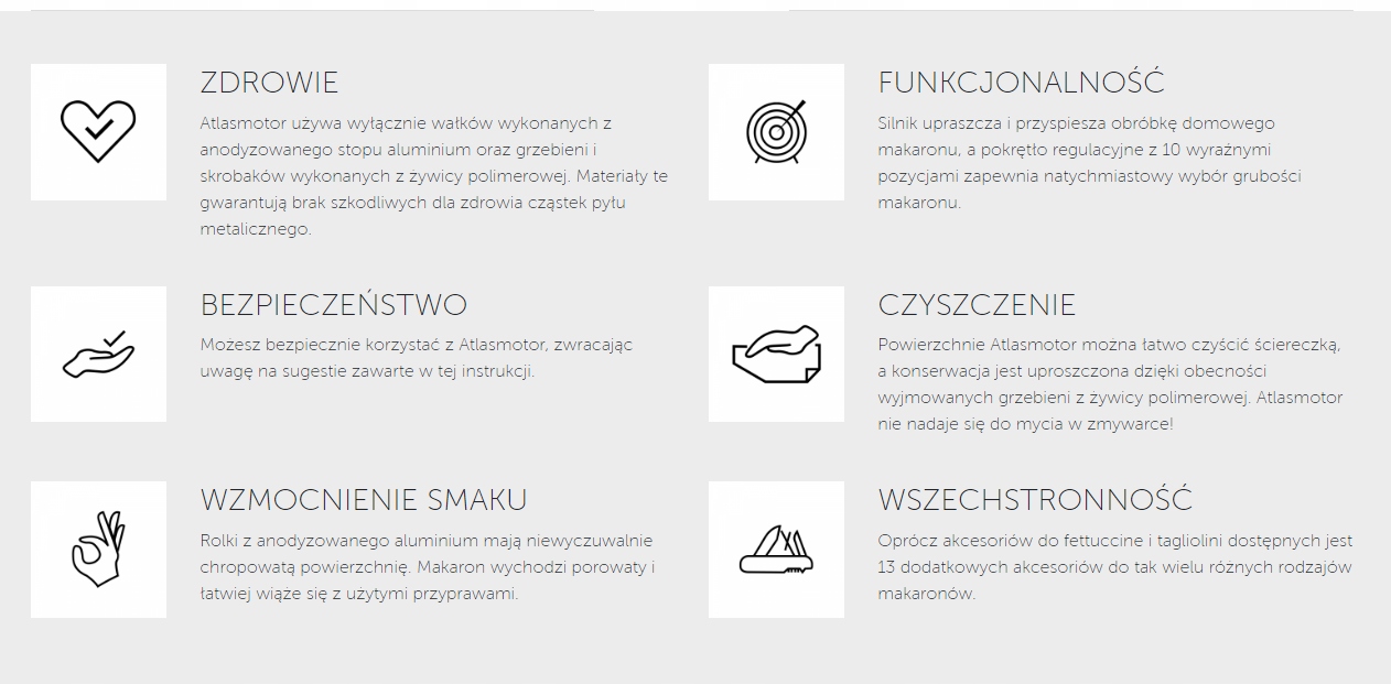 Машины Marcato изготовлены из превосходных материалов, не содержат токсичных компонентов и соответствуют всем стандартам ЕС по гигиене и безопасности.