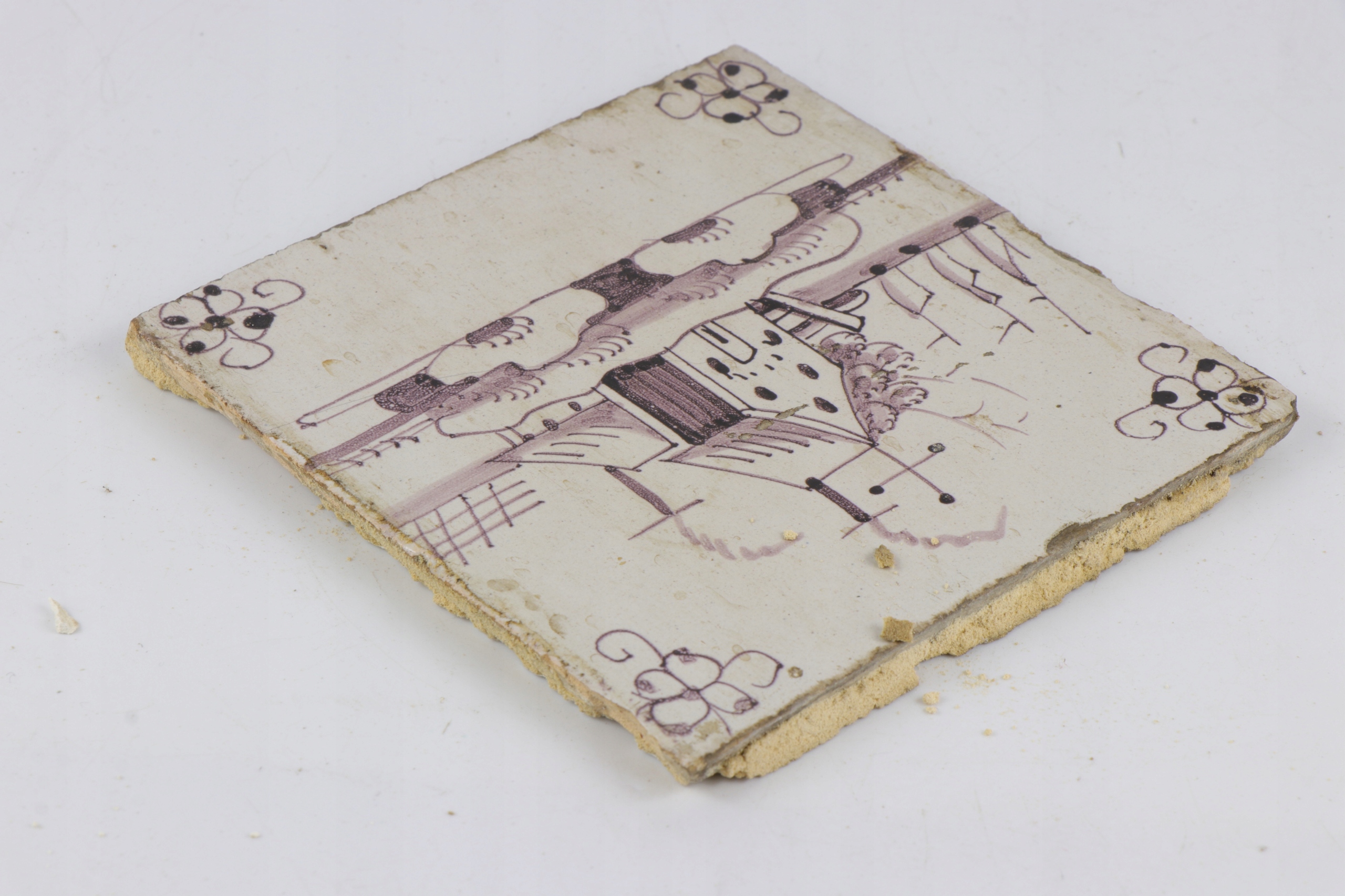 Делфтская марганцевая стропильная плитка 17-го 18-го века, антикварная