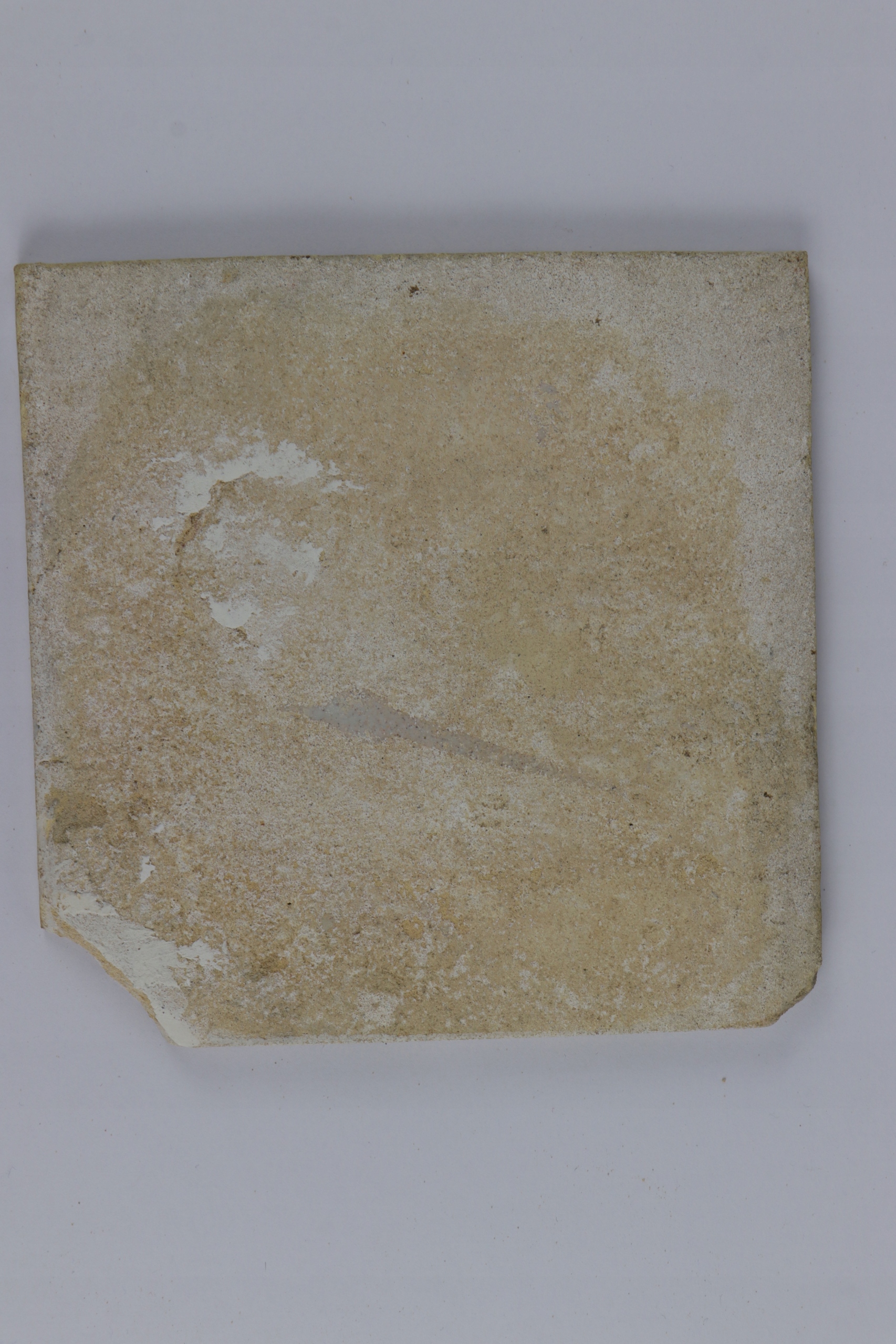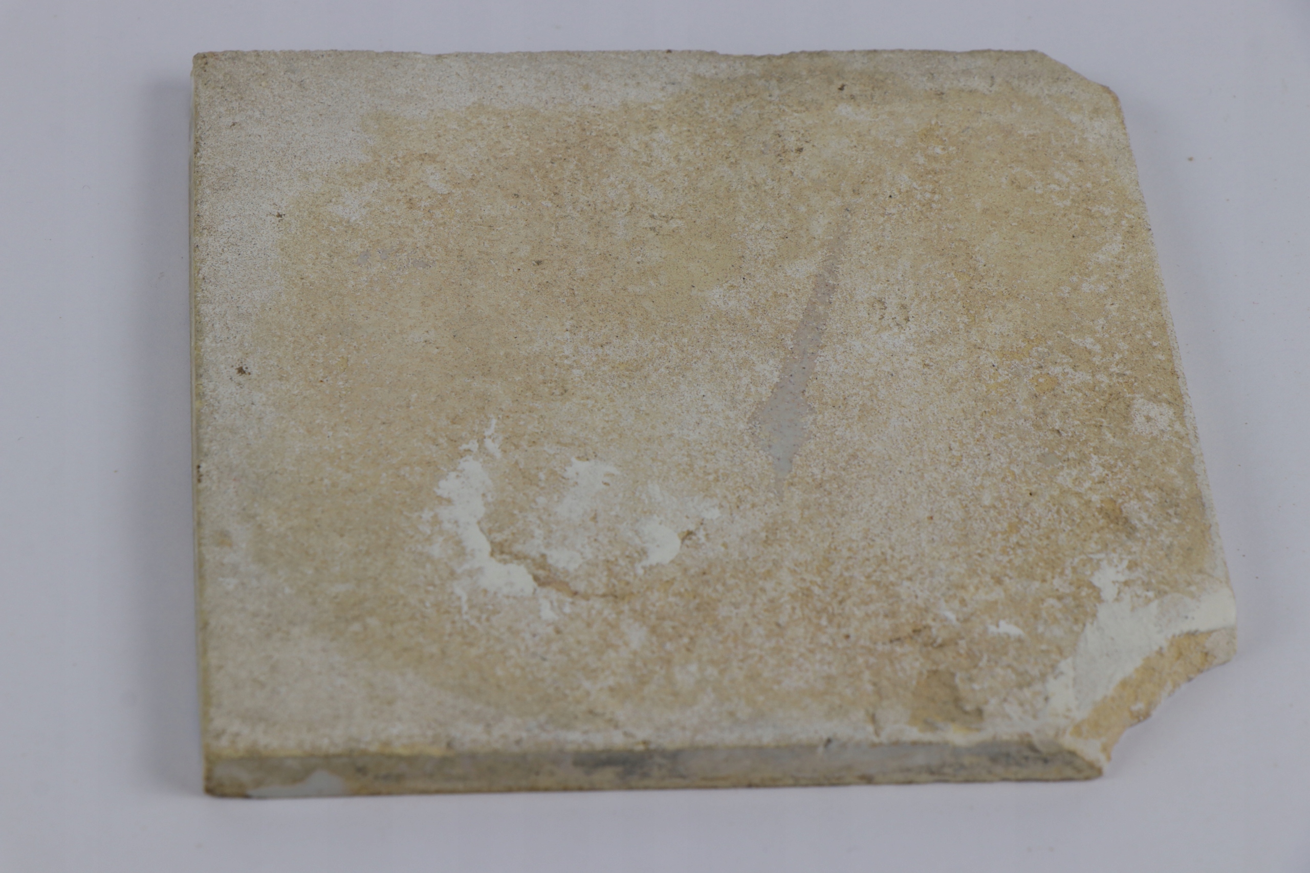 Как видно на фото фотографии. Состояние хорошее, виден небольшой дефект в левом нижнем углу плитки.