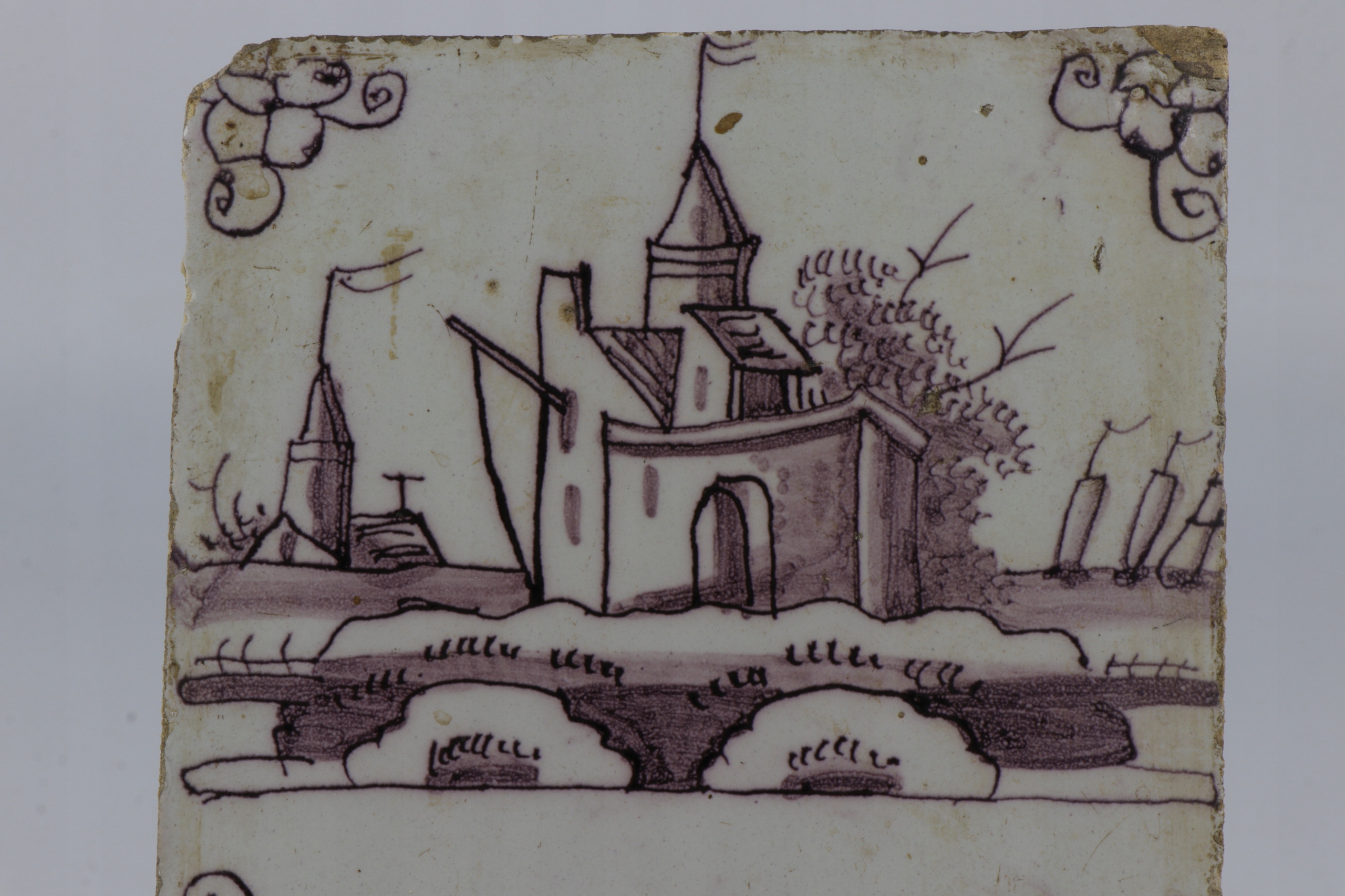 Марганцовистая плитка Делфт, расписанная вручную. На плитке изображен орнамент жанровой сцены. Предлагаю другие похожие плитки на другом аукционе.