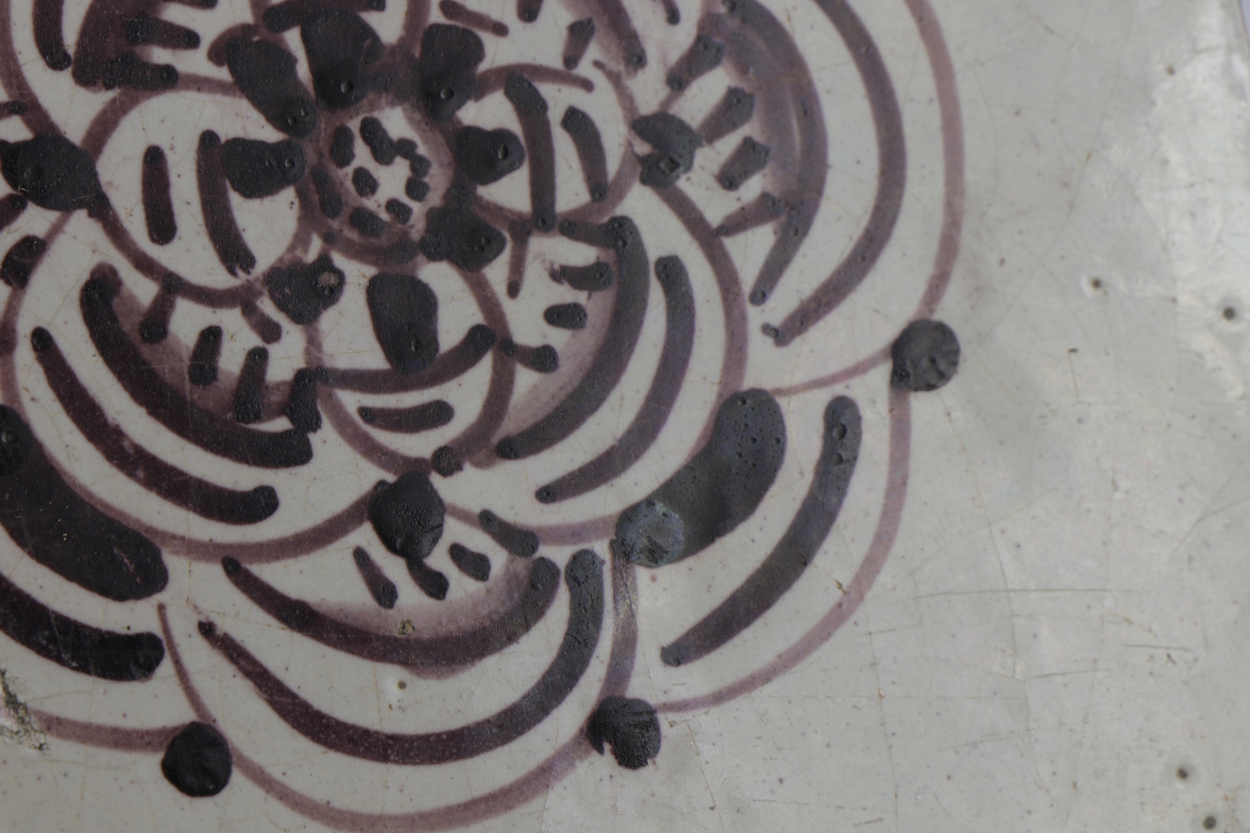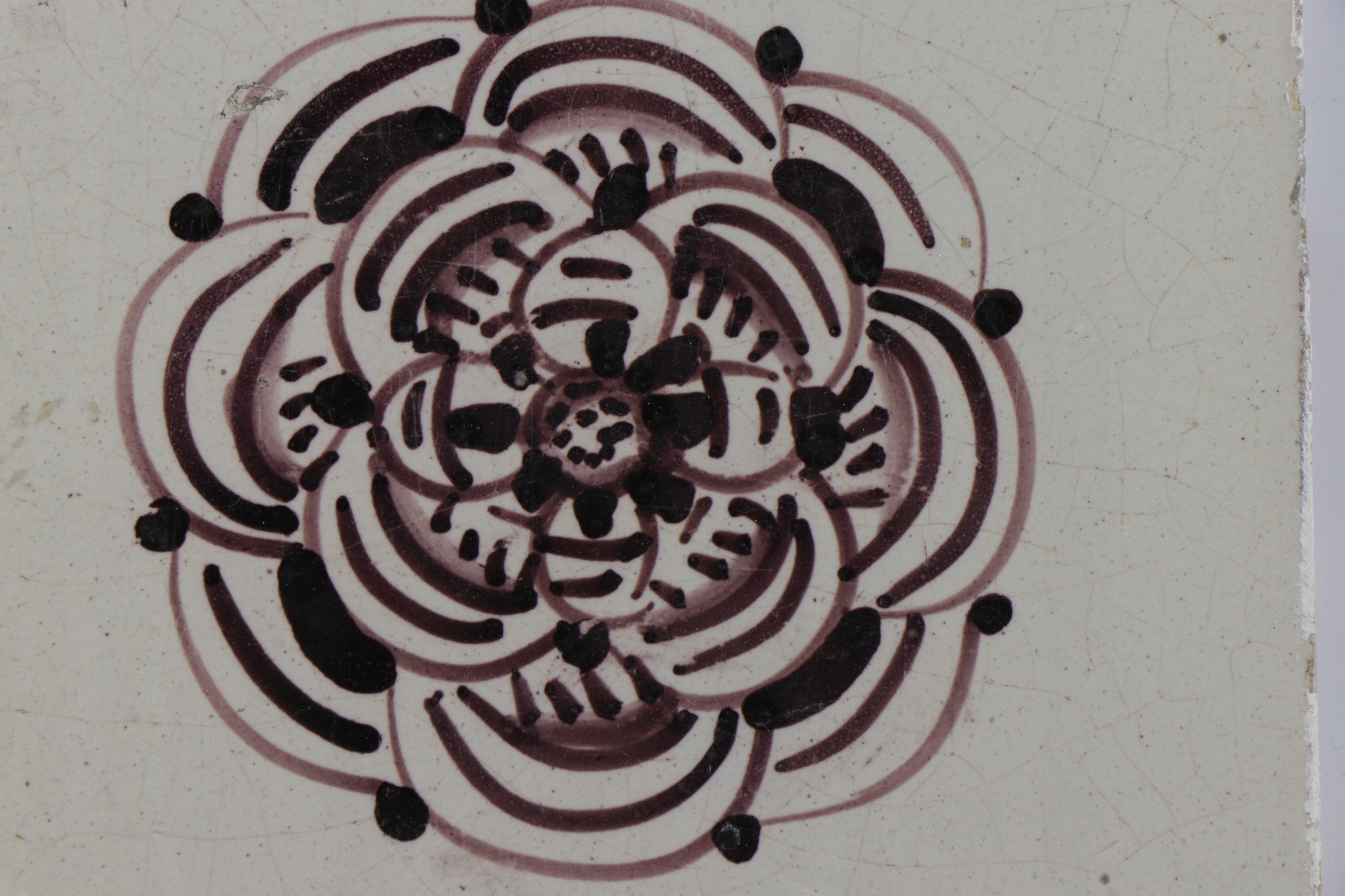Марганцовистая плитка Делфт, расписанная вручную. На плитке изображен орнамент. Предлагаю другие подобные плитки на другом аукционе.