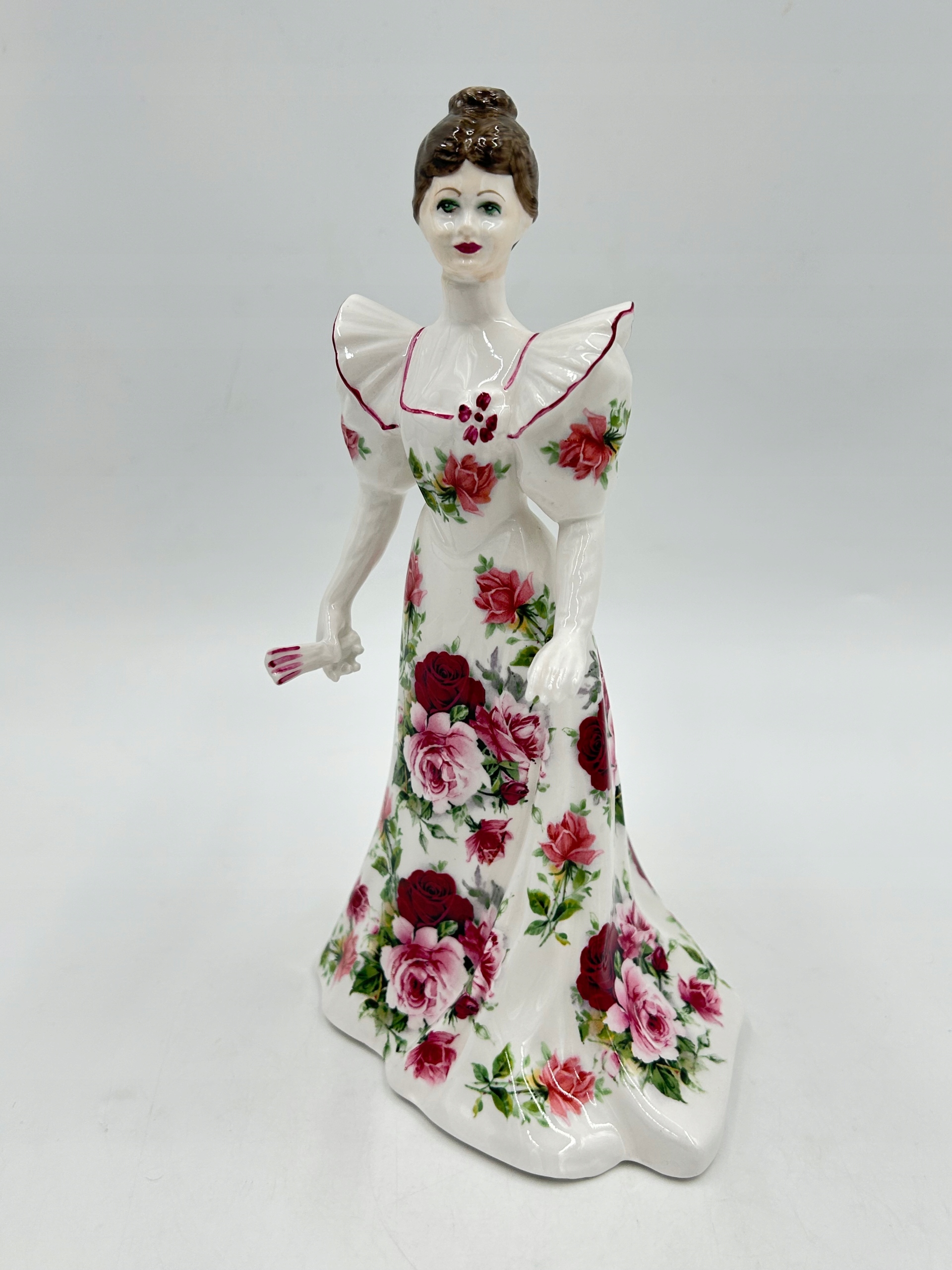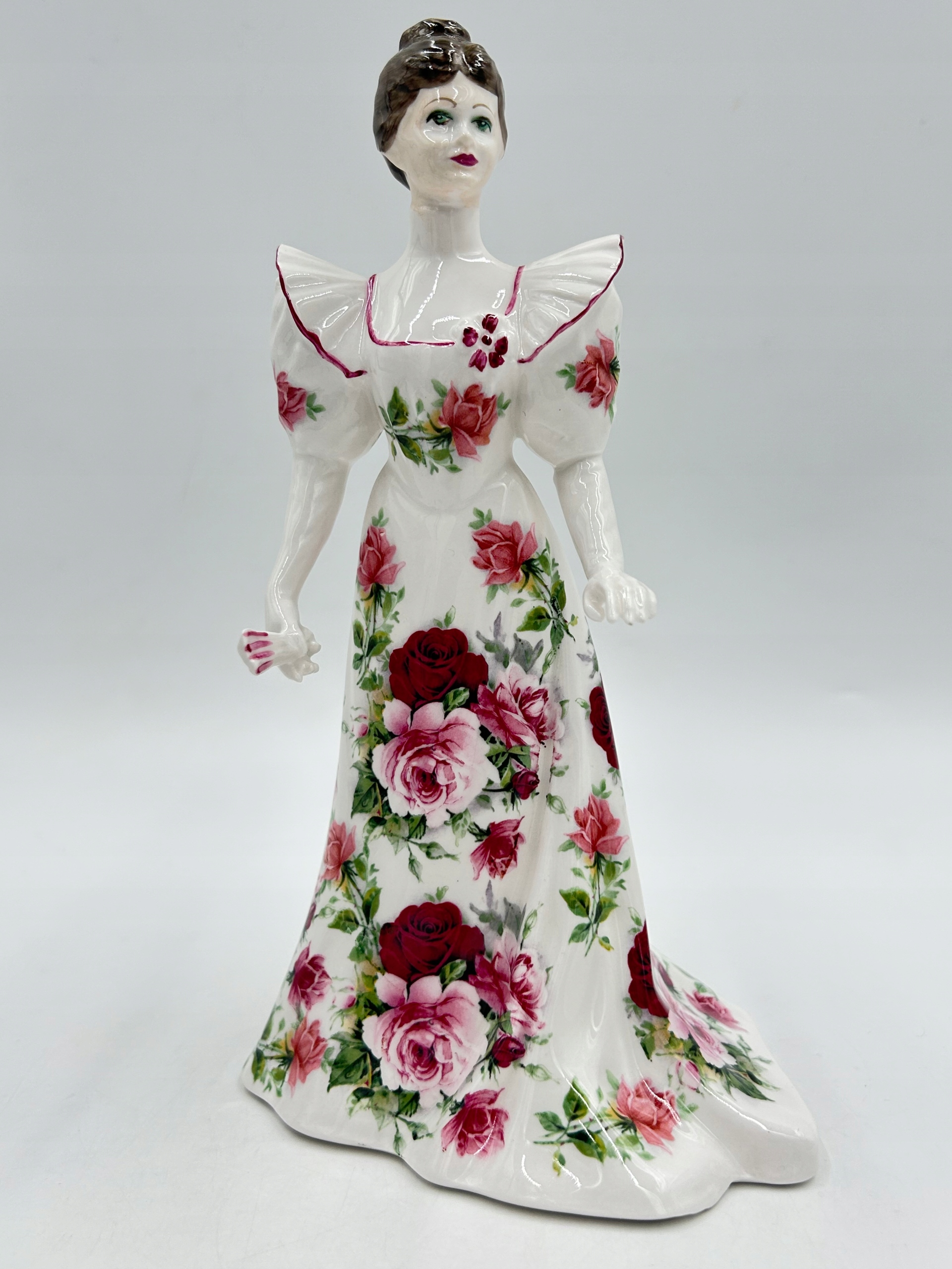 Тема продажи - это уникальная фигурчание Мадлен. фигура с большим вниманием к поддержанию деталей, платье, украшенное розовыми. Уникальный декоративный элемент для людей, которые ценят элегантность, английские любители фарфора.