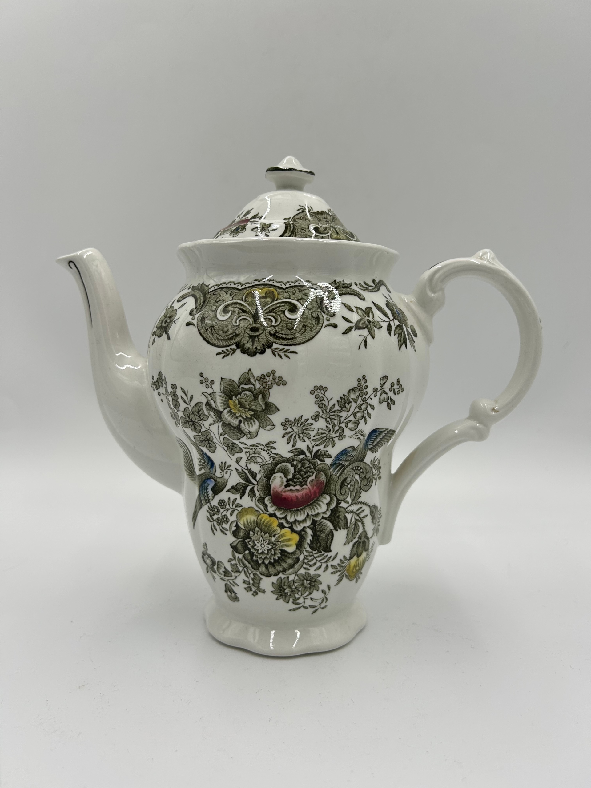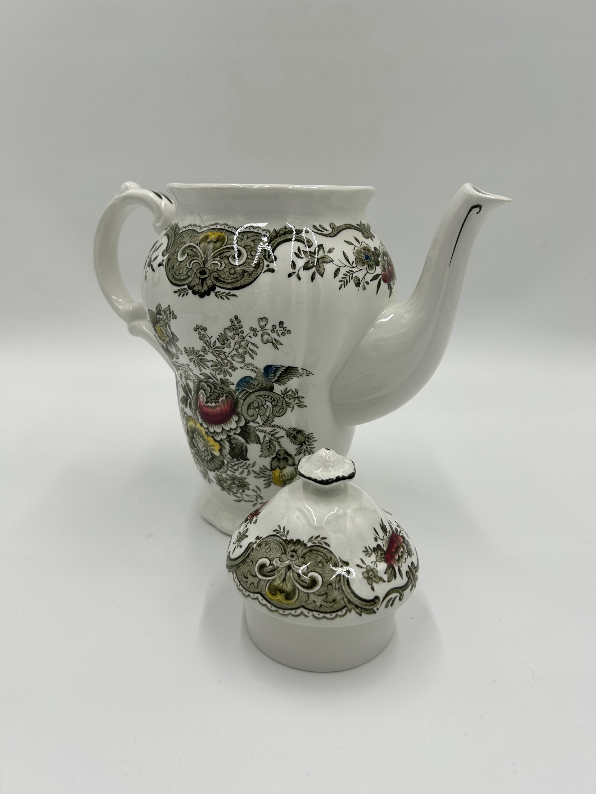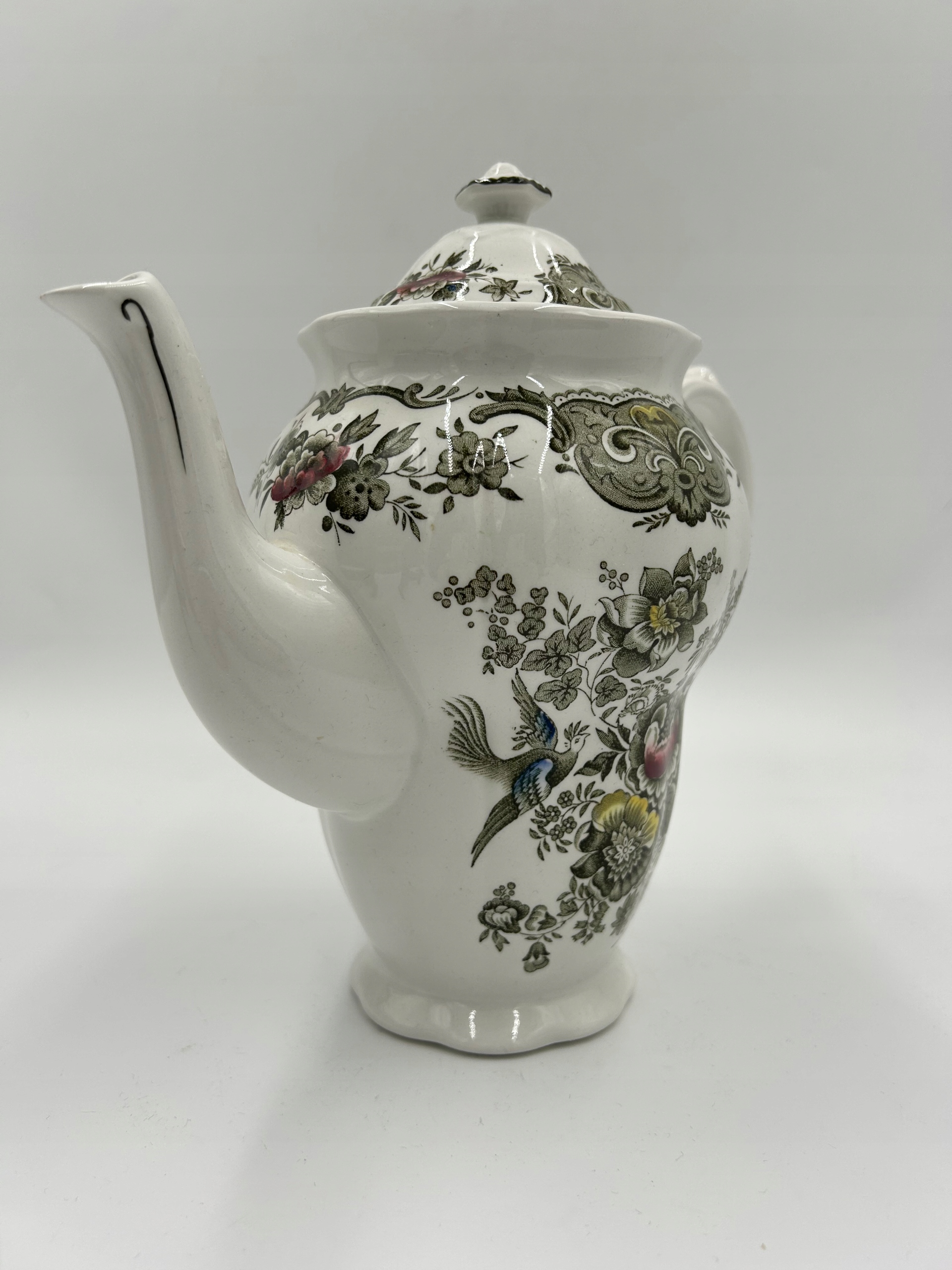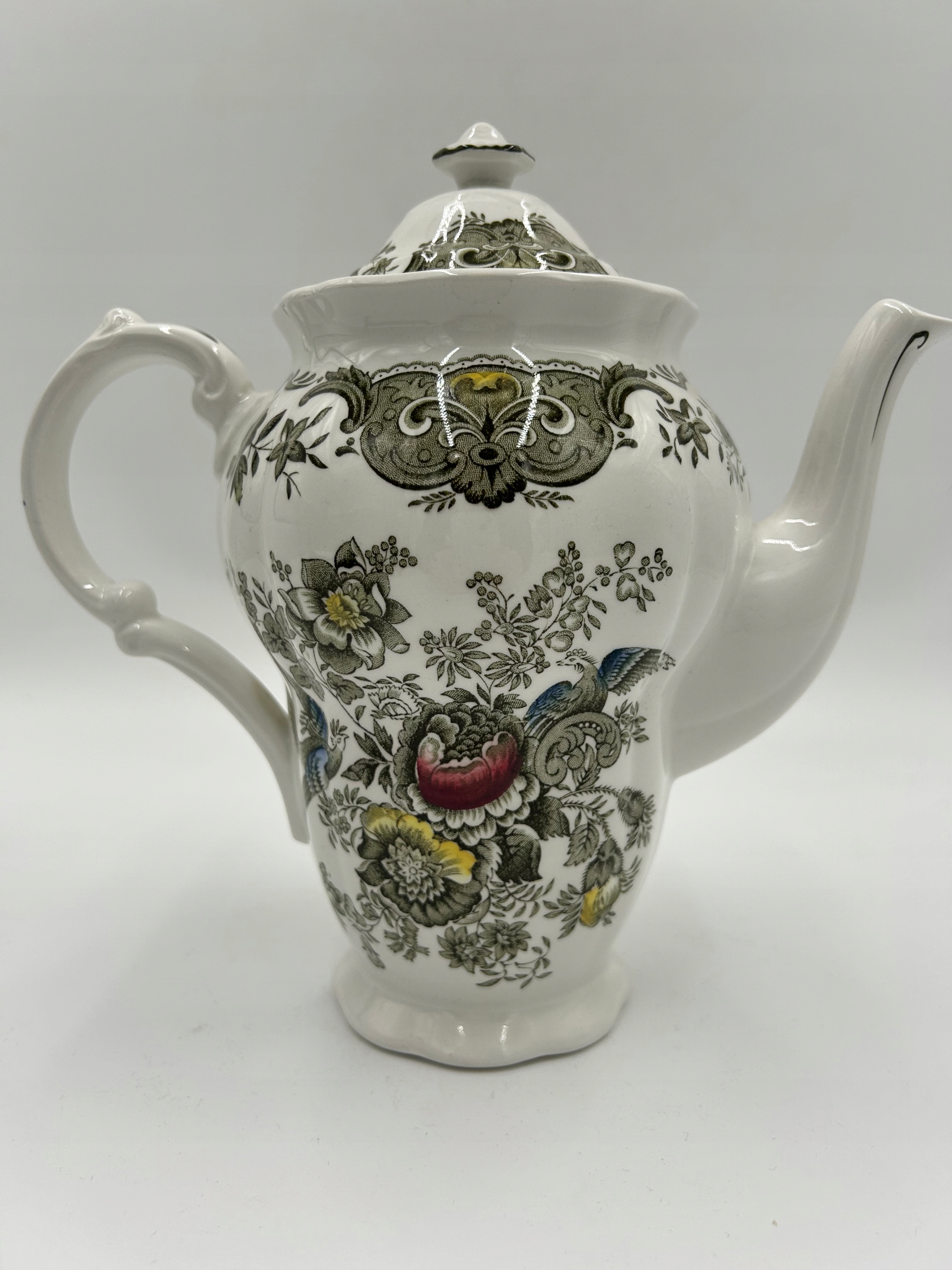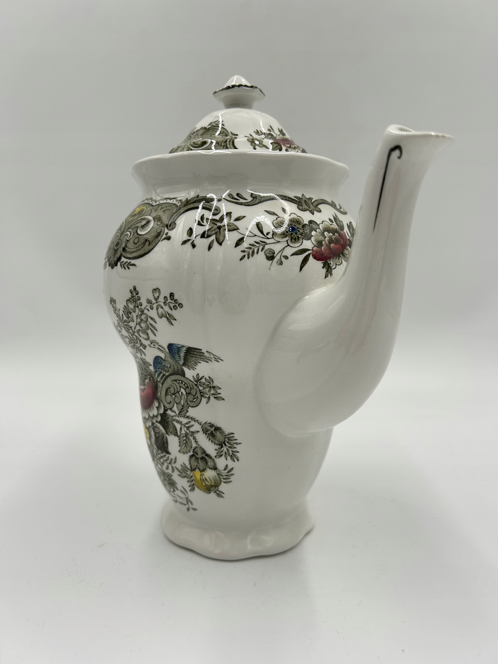 Объект продажи - очаровательный фарфоровый кувшин Ridgway EST 1972 Staffordshire - фарфоровый кувшин. Богатые украшения с цветочным мотивом и красочными птицами. Уникальный декоративный элемент для любителей красивого английского фарфора. 1960/70.