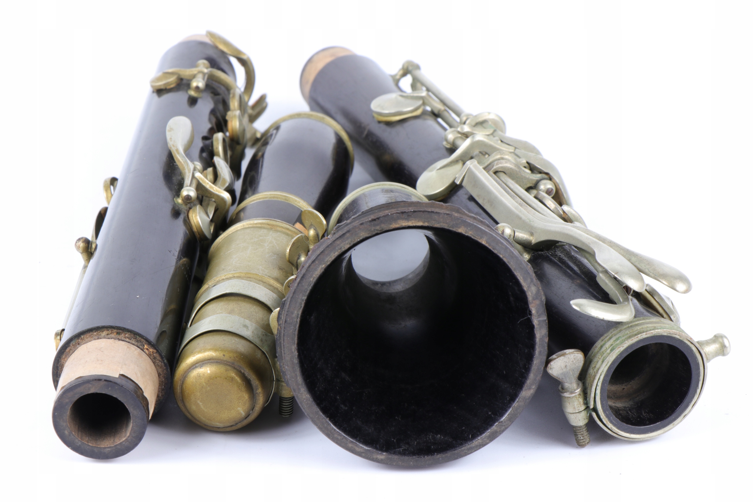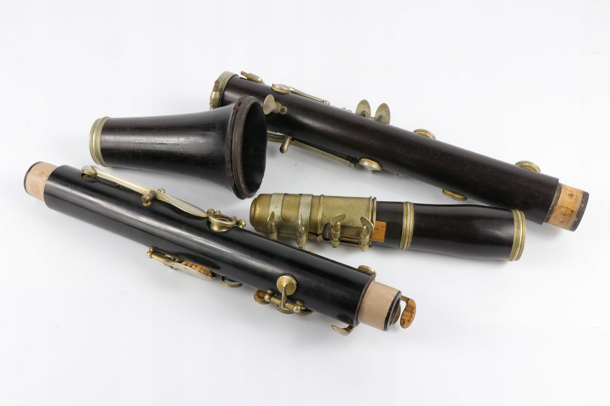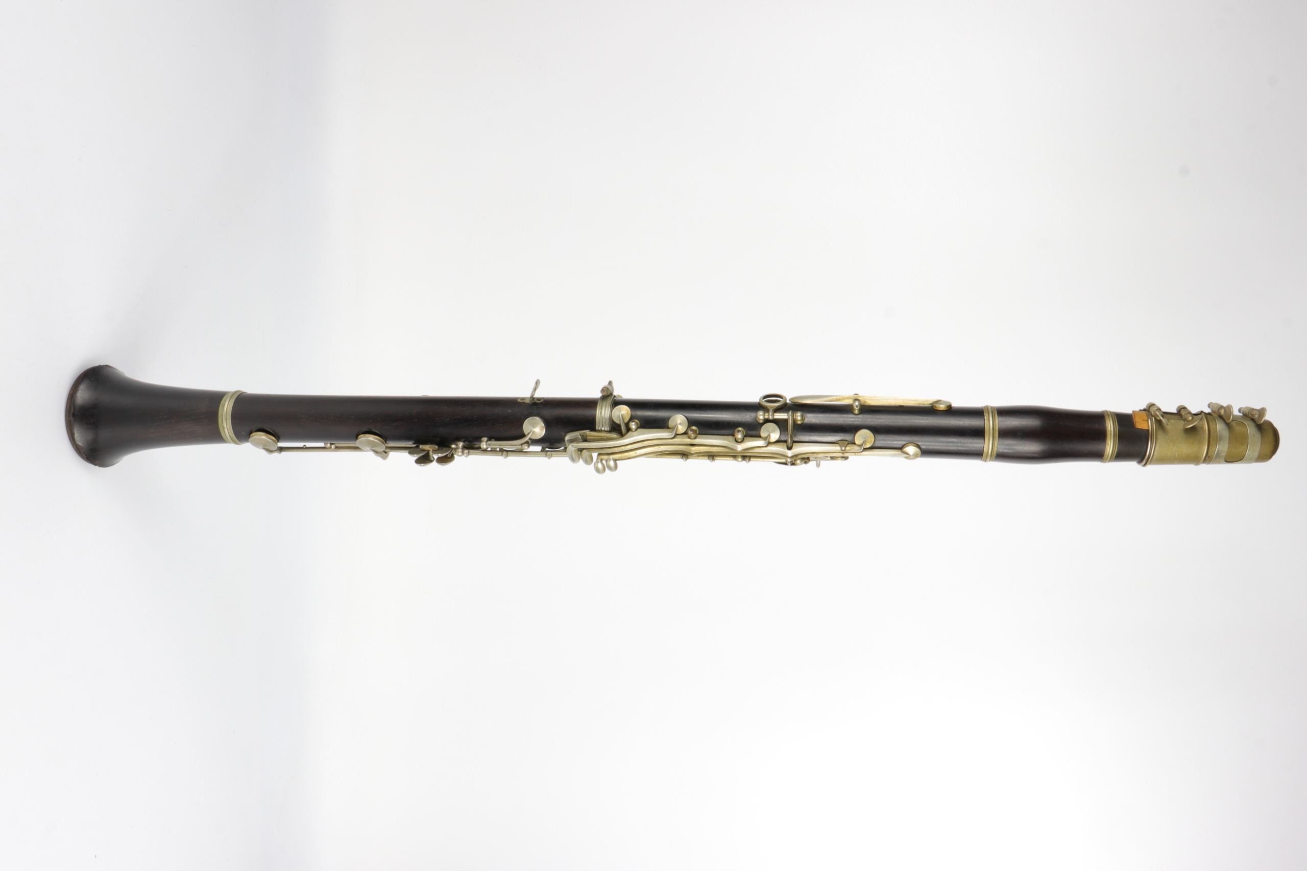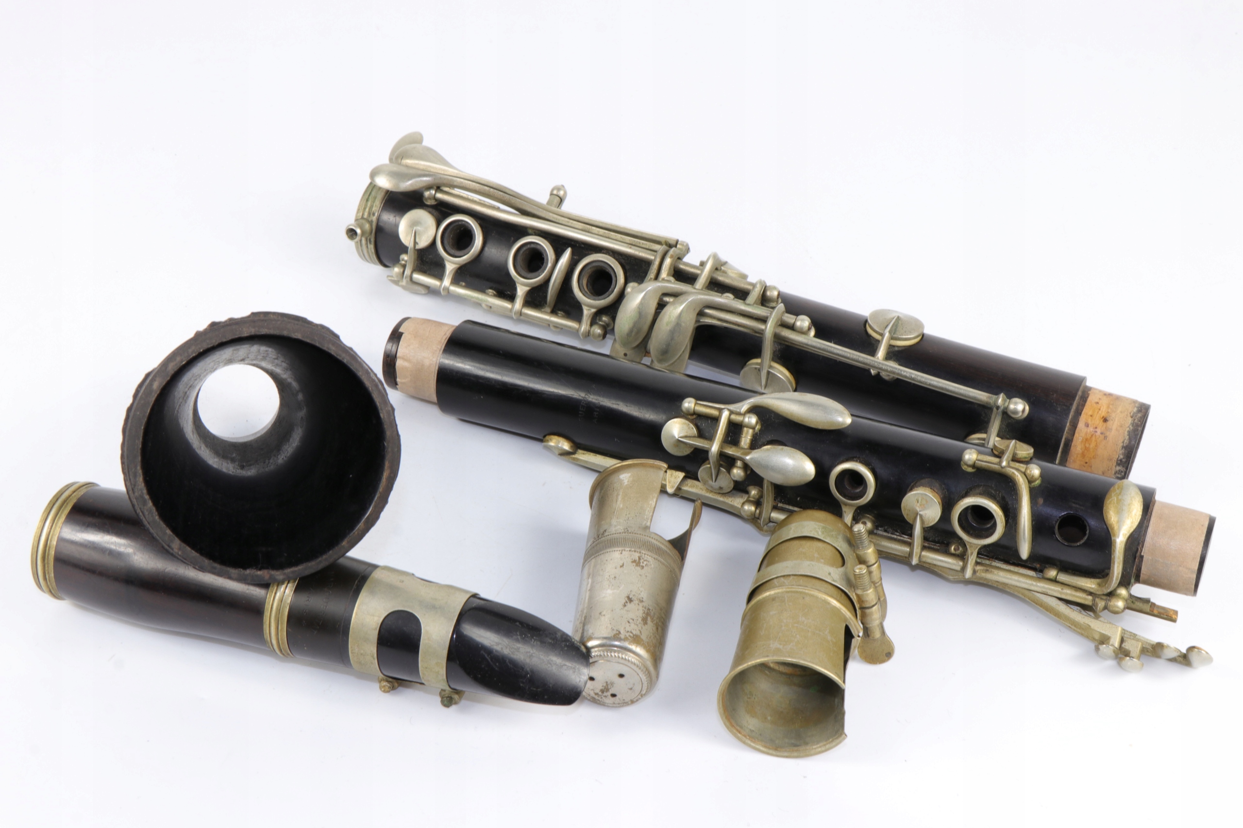 старый исторический кларнет девятнадцатого века, подписанный со знаком Маргеритата Парижа. Компания работала во второй половине 19 -го века. Нижняя часть тела не заряжена.