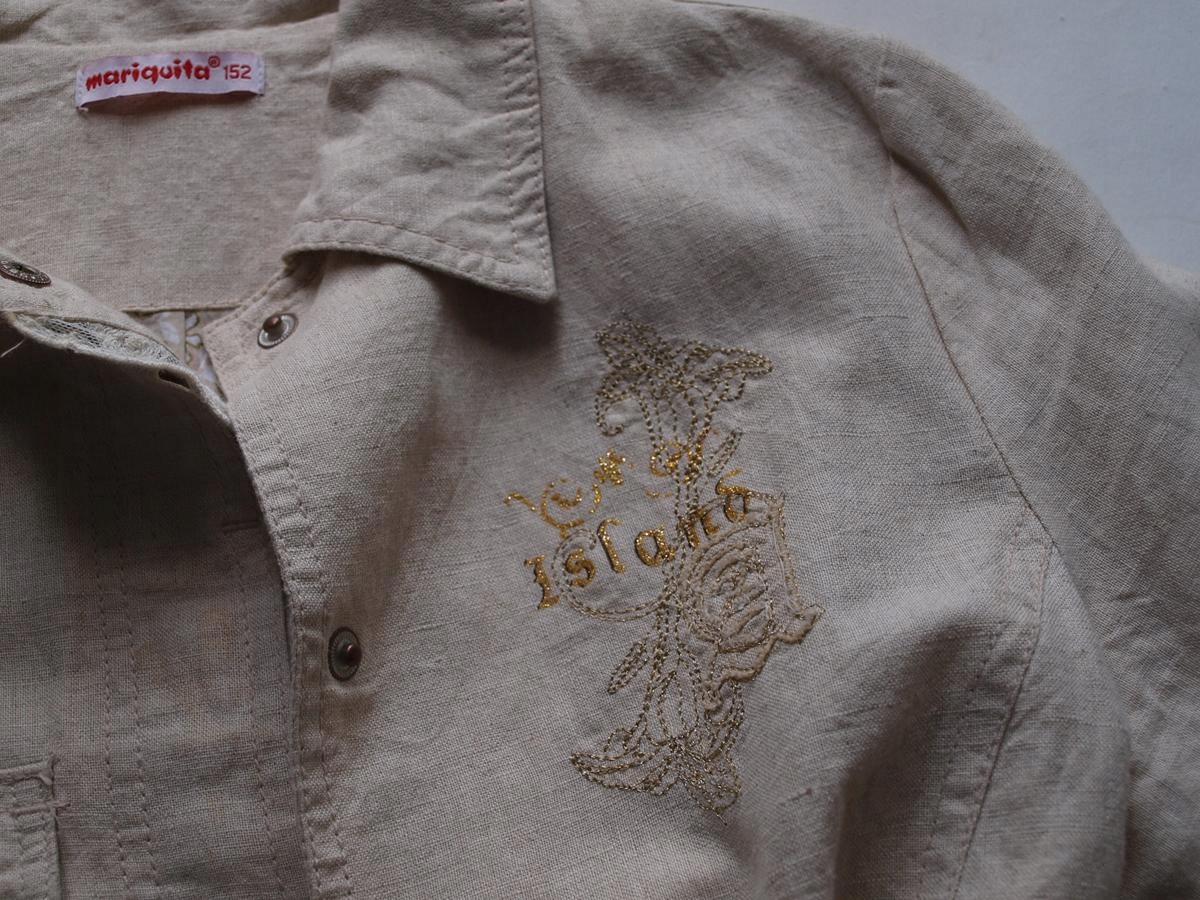 przód - dwie Zapinane na zatrzask kieszenie, Ozdobny haft złotą nitką, Ozdobna patka.