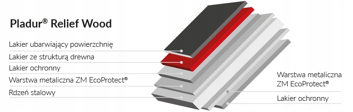 Покрытие PLADUR Relief WOOD, имитирующее древесину, идеально имитирует ее структуру, создавая неповторимый визуальный эффект на крыше. Высококачественная немецкая сталь, используемая для производства JANOSIK, производится известной компанией Thyssenkrupp Steel Europe – лидером мирового рынка.Благодаря защите стального сердечника смесью цинка и магния лист стал более прочным, а срок его службы увеличился. расширенный.