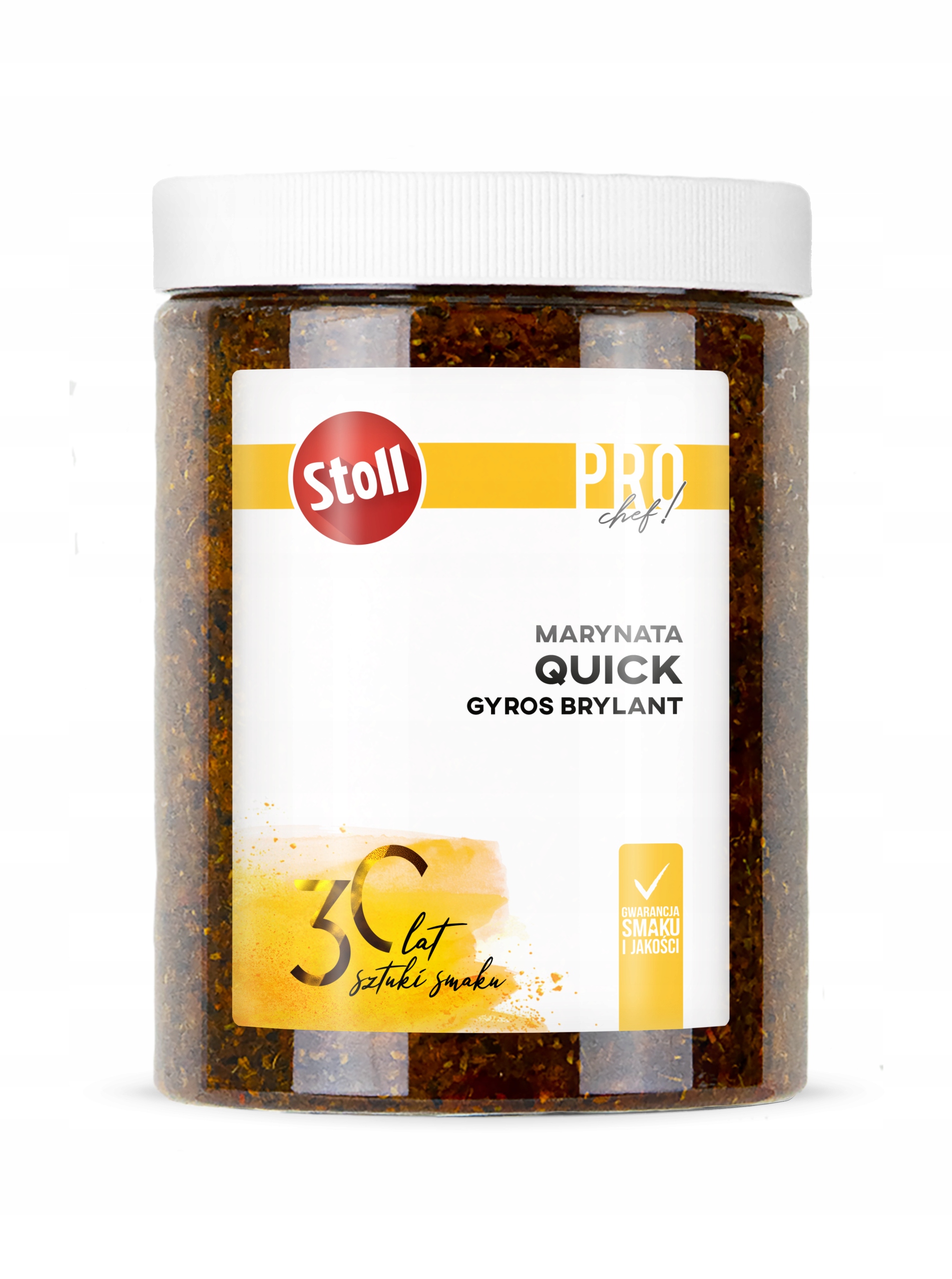 Описание: Quick Gyros Brylant - отличная маринада, вдохновленная греческой кухней, особенно для свинины. Это также будет работать как дополнение к птице. Вы можете использовать его для приготовления мяса, для выпечки и гриля. Мы рекомендуем маринованное мясо в прохладном месте как минимум 2 часа. Вы получите наилучшие результаты через 12 часов. Держите тепловую обработку без дополнительной масла. Дозирование : в зависимости от того, маридут ли вы нарезанное мясо или более крупные элементы, используете около 70-80 г маринадов на 1 кг мяса. Тщательно перемешайте перед использованием. После открытия храните в охлажденных условиях. Не замораживайте.