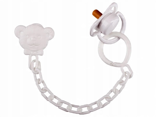 - Соска белая на цепочке и зажиме