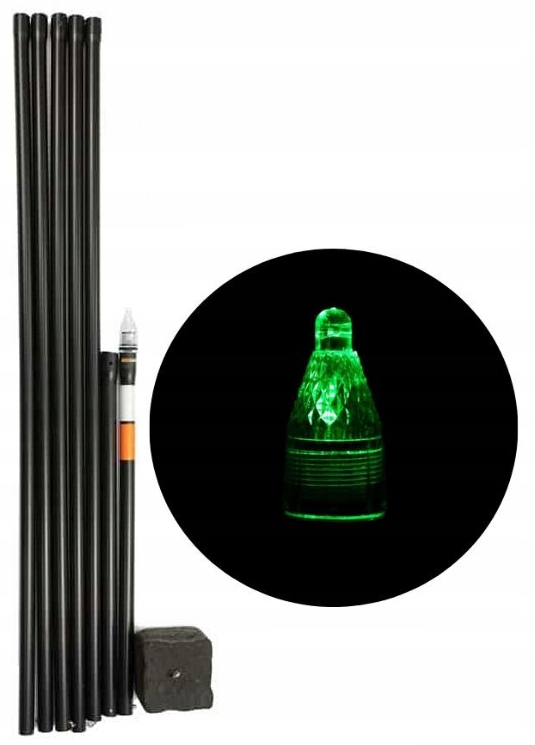 Длина маркера 6 метров (5 × 1 м и 2 × 0,5 м). Светодиоды доступны в 4 цвета: зеленый, красный, синий, желтый. Светодиод, питаемый двумя пальцами АА. Время освещения от 14 до 28 дней в час ( от 336 до 672 часов ). Маркерные секции в сочетании с простыми и быстрыми снимками. Удаленный вес, с помощью системы соединительной трубы, поэтому нет возможности путаницы линии рыбалки.