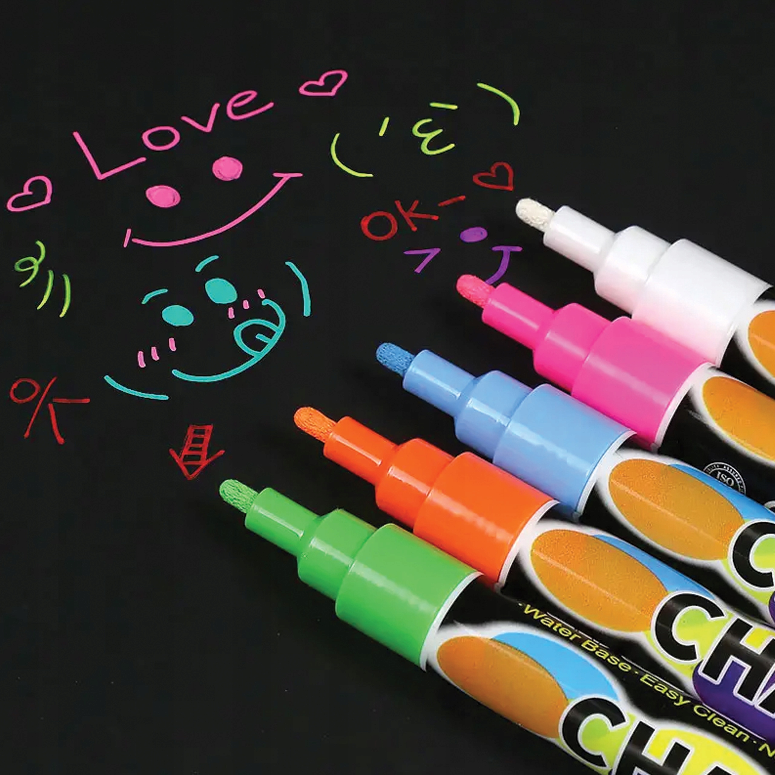 Сделанные из чернил на водной основе, они нетоксичны, не имеют запаха и безопасны для детей. Независимо от того, являетесь ли вы учителем, студентом, художником, взрослым или ребенком, эти меловые маркеры вам нужны. . Их можно легко и полностью удалить влажной бумагой, не оставляя разводов и пятен.