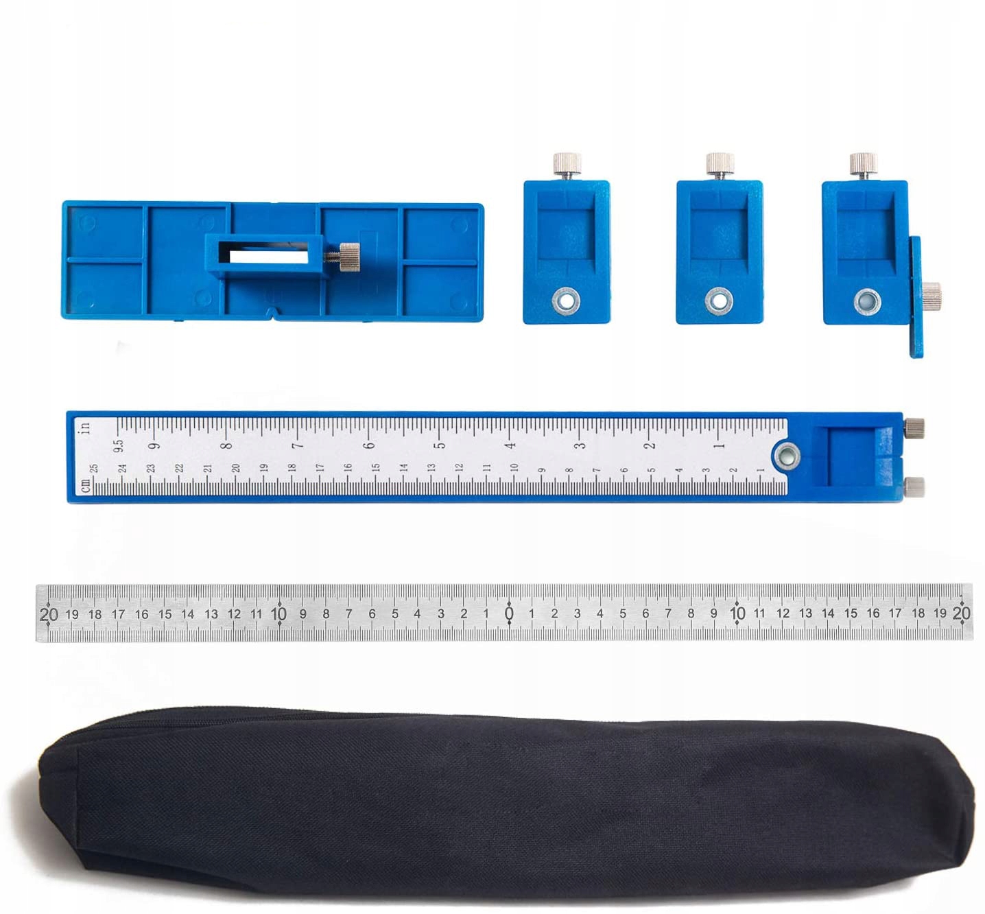 - Синяя полоска имеет подвижный параллельный упор с винтовой фиксацией, используемый для определения расстояния от края обрабатываемого материала. Длина синей полоски: 25 см.