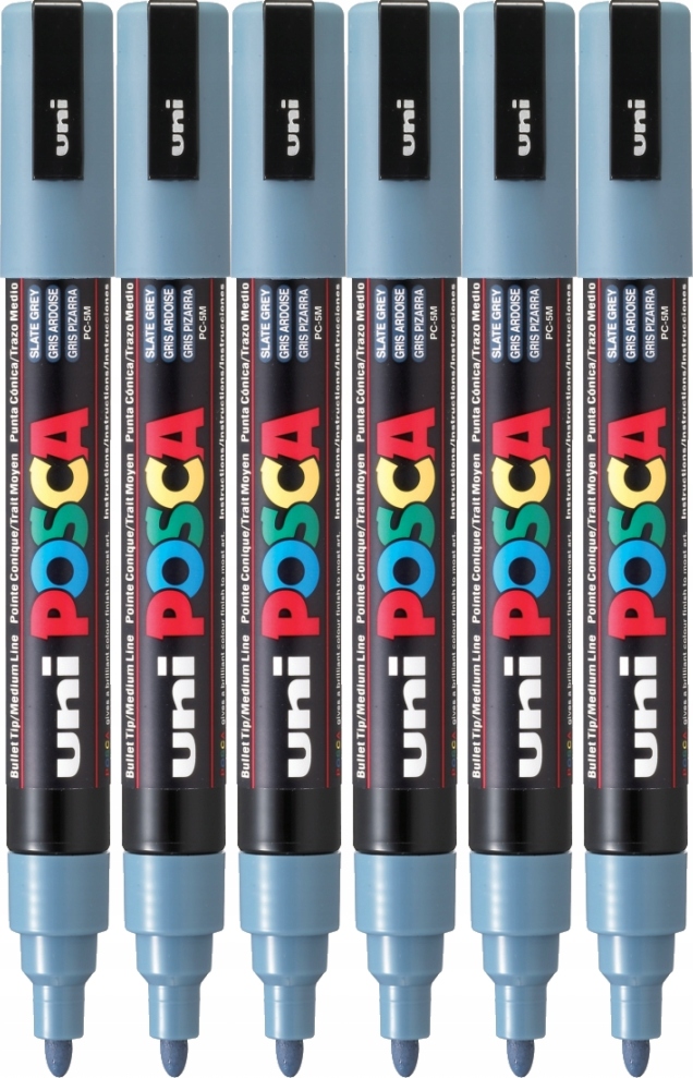 MARKER Z FARBĄ PLAKATOWĄ Uni Posca PC-5M SZARY CIEMNY x 6