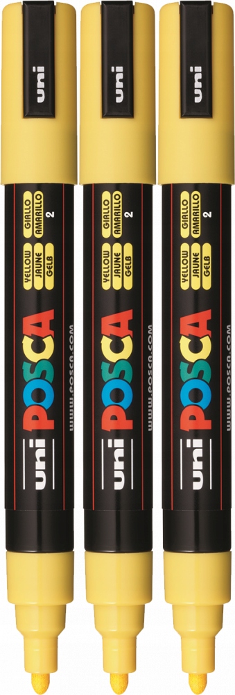 МАРКЕР С ПОСТЕРНОЙ КРАСКОЙ Uni Posca PC-5M ЖЕЛТЫЙ x 3
