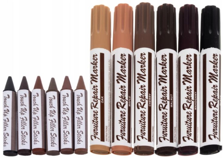 - РЕМОНТ ЦАРАПИН НИКОГДА НЕ БЫЛ ТАК ПРОСТО — мелкие повреждения и царапины на поверхности теперь можно легко отремонтировать с помощью нашего набора для ремонта мебели. Ремонт производится путем заполнения более глубокого дефекта воском и прорисовки структуры древесины маркером соответствующего цвета.