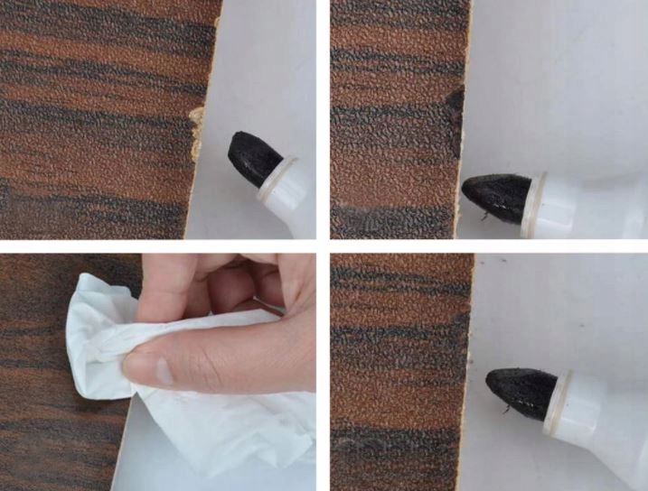 Небольшие повреждения и царапины на поверхности теперь можно легко исправить с помощью наш набор для ремонта мебели. Ремонт осуществляется путем заполнения более глубокого дефекта воском и прорисовки структуры древесины маркером соответствующего цвета. Набор позволяет быстро устранить повреждения панелей, мебели, дверей и других изделий из дерева и древесных материалов самостоятельно. После использования ремкомплекта вам не придется «долго ждать», пока все высохнет. Маркеры быстросохнут.