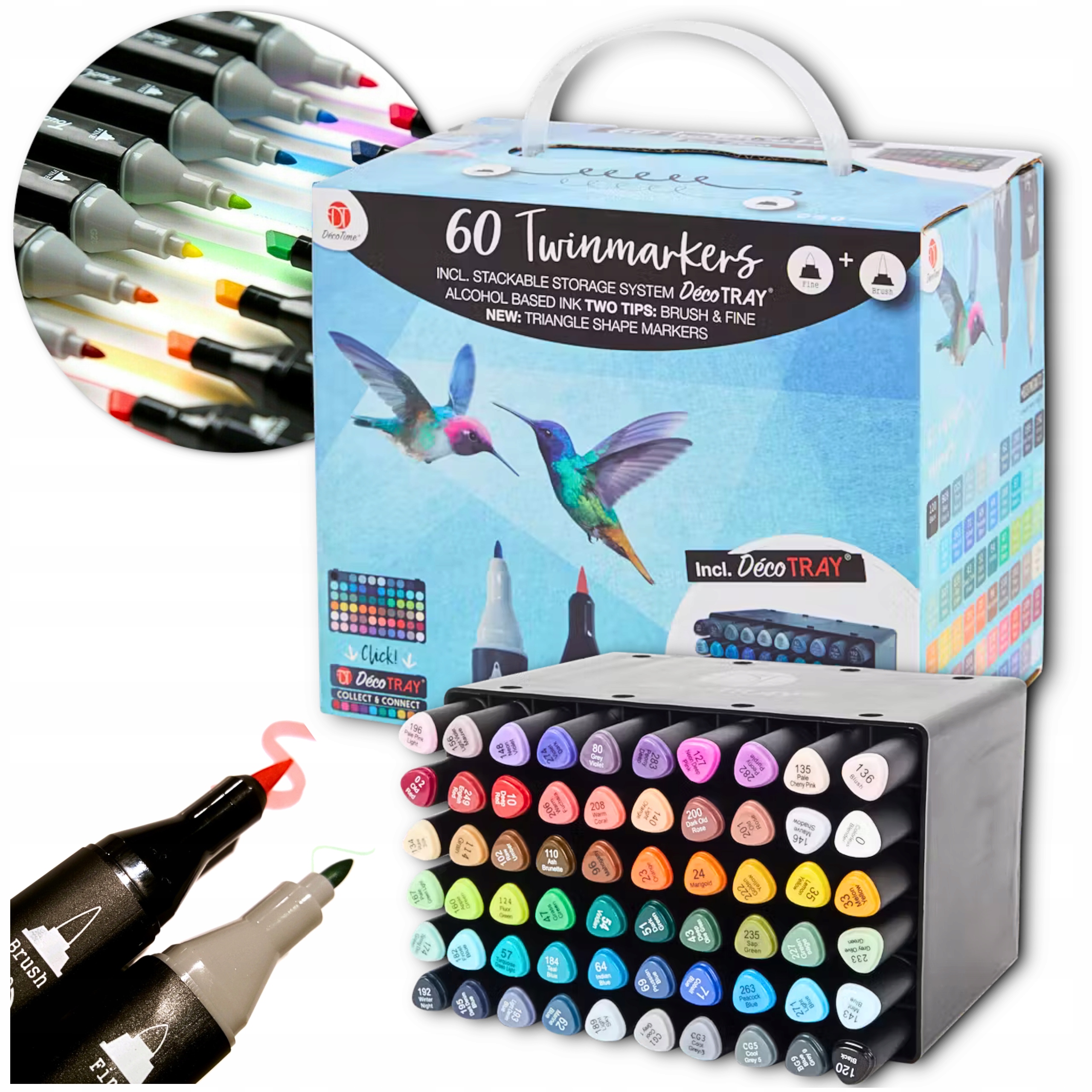 МАРКЕРИ, СПИРТОВІ РУЧКИ, ДВОСТОРОННІ ТВІНМАРКЕРИ, 60 ШТ.+ФУДАР