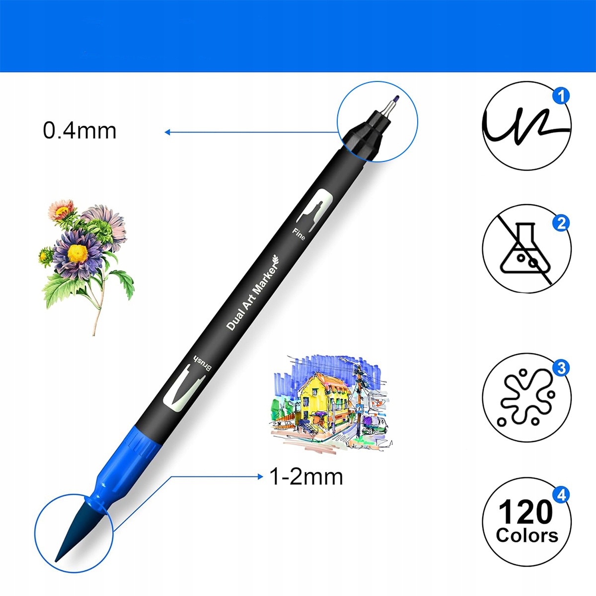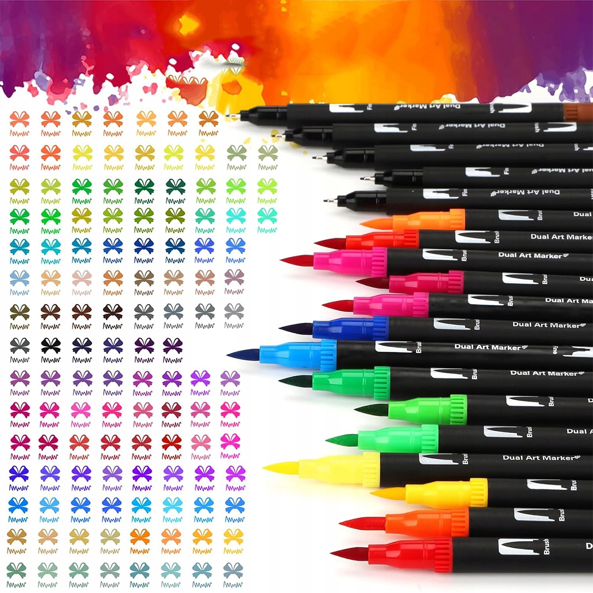 Набор из двух маркеров щетки 120 цветов с черным корпусом, маркеры с толстым и тонким наконечником, набор маркеров кисти, пуль для журналирования, каллиграфия, манга, раскраски и ручные надписи h1>