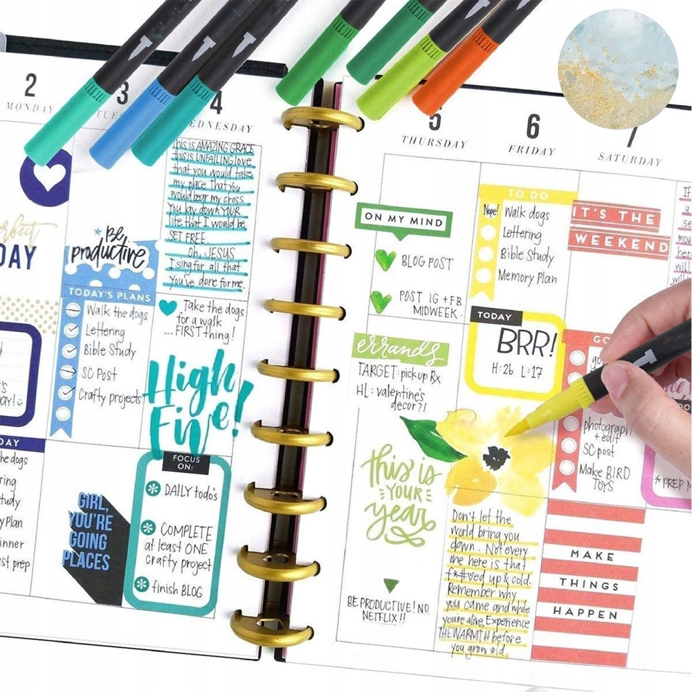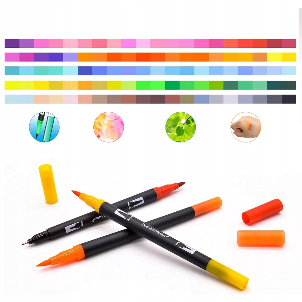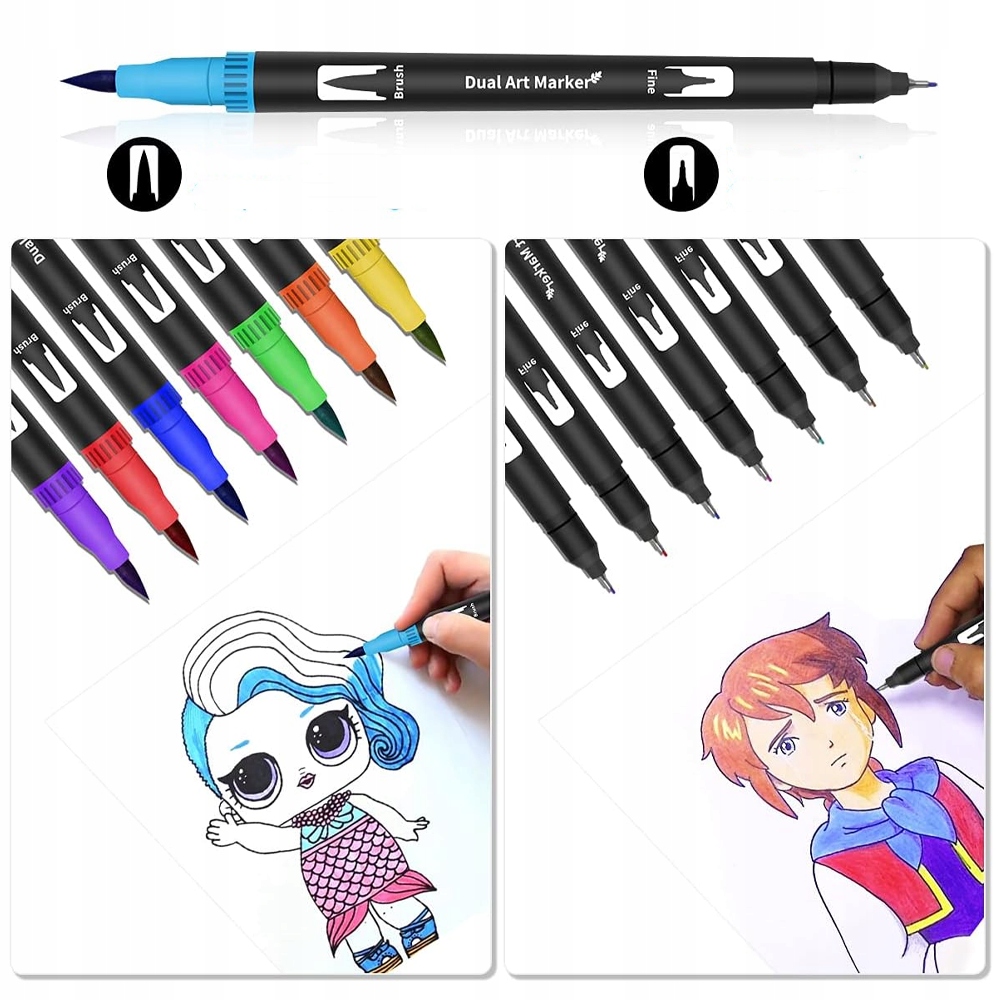【Идеальный дизайн】Этот набор цветных маркеров поставляется с кончиками двух размеров: тонким кончиком 0,4 мм и кистью кончик 1-2 мм. Тонкий кончик достаточно прочен, чтобы делать заметки, а кончик кисти позволяет создавать красивые плавные мазки. Наслаждайтесь удобным хватом: колпачки и чернила соответствуют каждому цвету, что упрощает идентификацию и быстрый выбор.