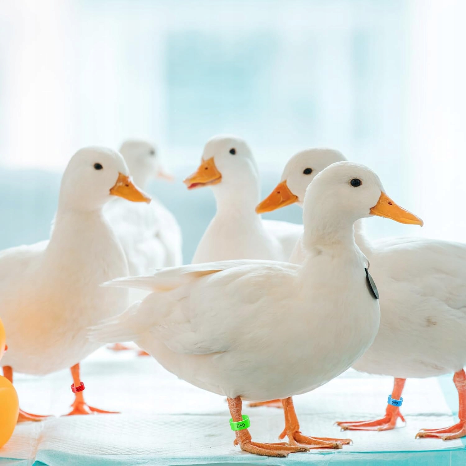 🦆🦆- Выполнены в 5 ярких цветах: желтом, синем, фиолетовом, красном, зеленом. Благодаря этим ярким цветам вашу домашнюю птицу будет легко найти.