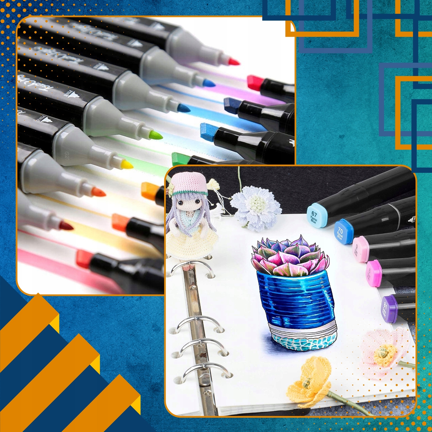 Набор из 80 двусторонних спиртовых маркеров в элегантной сумке — идеальный инструмент для каждого художника. Богатая цветовая палитра, эргономичная форма и нетоксичные чернила гарантируют универсальность, комфорт и безопасность.