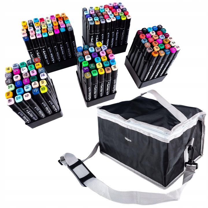 В комплект входит удобная сумка для хранения и транспортировки маркеров. Сумка имеет ручку и регулируемый плечевой ремень. В сумке есть пластиковые органайзеры с маркерами, что значительно упрощает сортировку.
