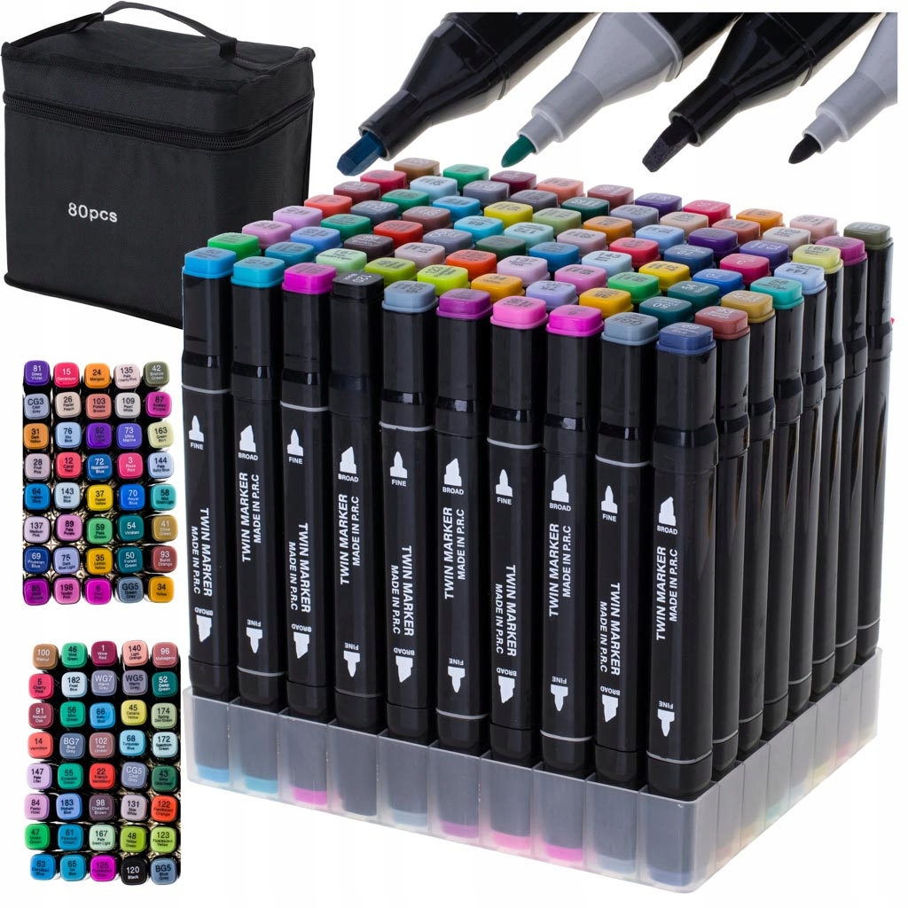 МАРКЕРЫ АЛКОГОЛЬНЫЕ ДВУХСТОРОННИЕ 80 шт + ЧЕХОЛ + ПОДСТАВКА