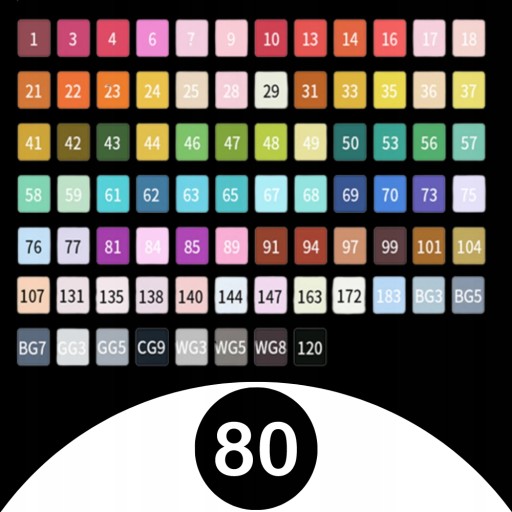 Набор из 80 маркеров насыщенных различных цветов — предложение для всех, кто начинаетсвои приключения с рисованием и для тех, кто рисует каждый день.