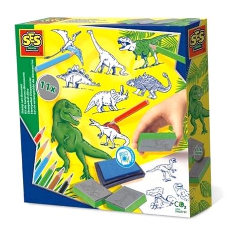 Забавный набор марок от SES с мотивом динозавра. С помощью 11 различных штампов и чернил на водной основе вы сможете создавать красивые рисунки. Раскрасьте динозавров карандашами из комплекта. Чернила высохли? Его можно активировать несколькими каплями воды.