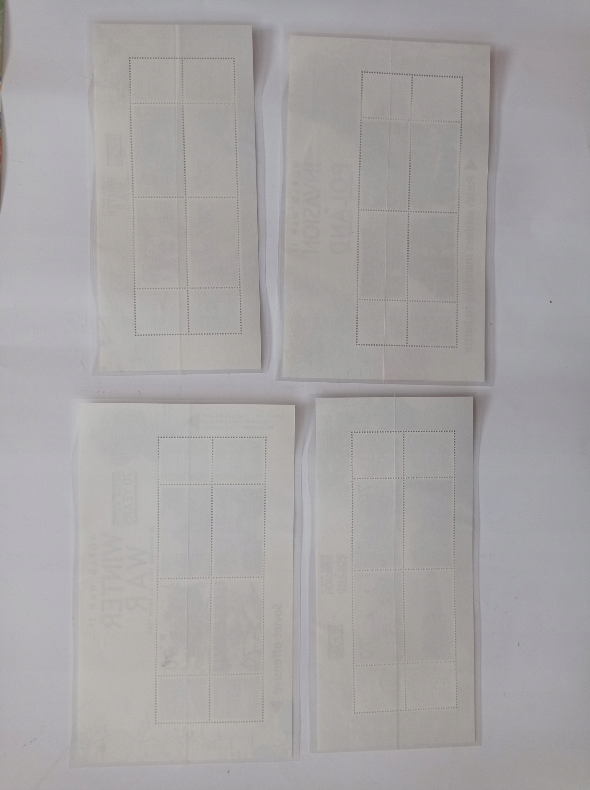 Предмет продажи — набор почтовых марок, видимых на фотографиях — марок Гвинеи и Антики, посвященных Второй мировой войне.
