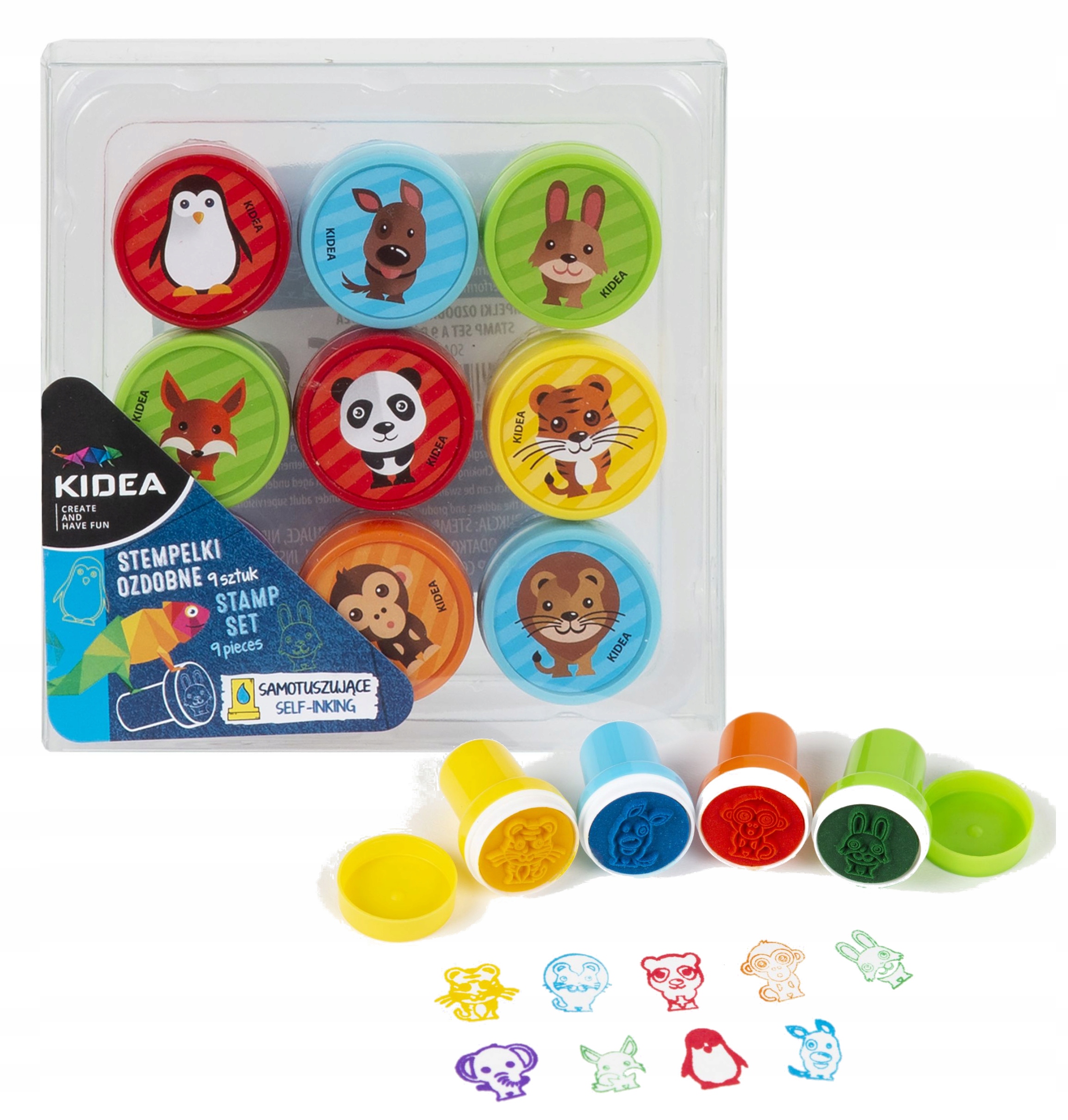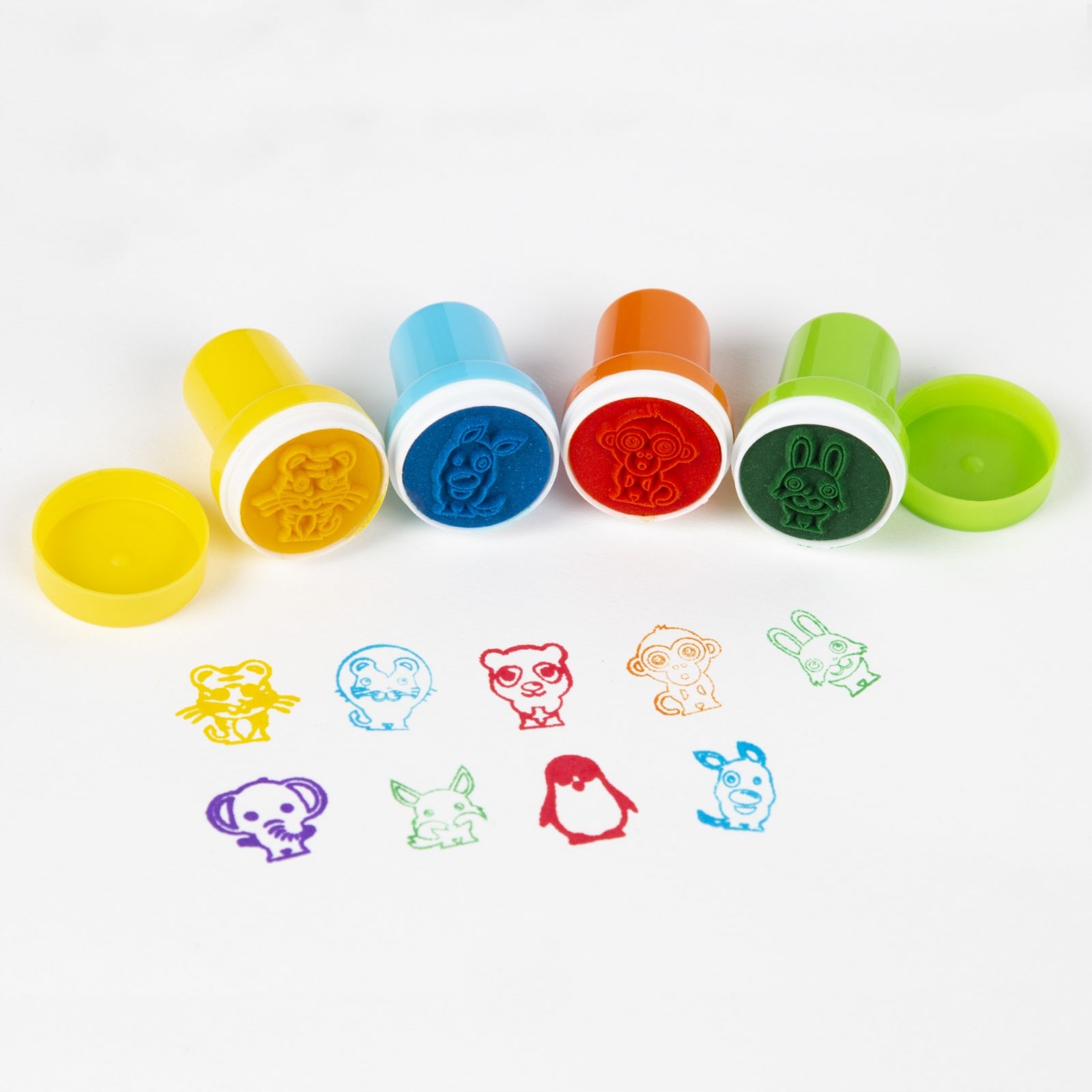 Марки в удобной пластиковой коробке, в новом дизайне с животными: лев, обезьянка, слон, тигр, коала, лиса, зайка, собака, пингвин. Они самозакрашивающиеся, поэтому не требуют использования дополнительной чернильной подушечки.