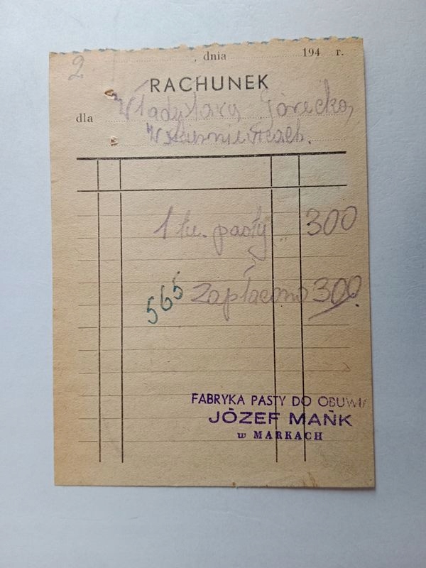 MARKI MAŃK SKIERNIEWICE RACHUNEK 1945 R 0778 D