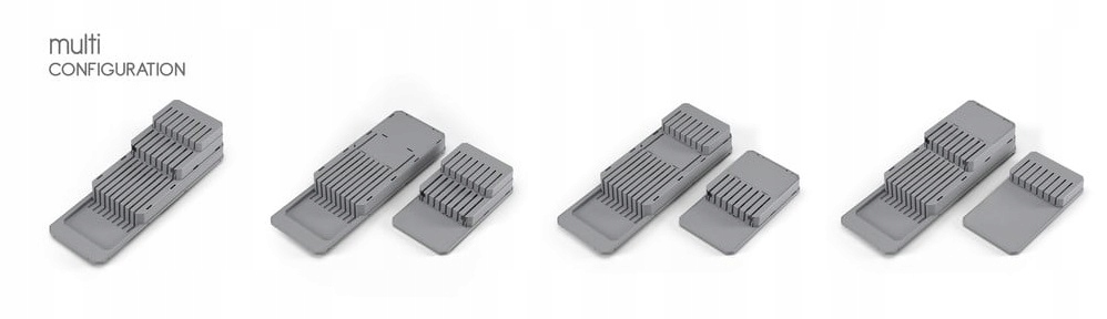 Регулируемая вставка картриджа является идеальным решением для организации ножей разных размеров. Организатор состоит из трех отдельных наложений, которые можно использовать отдельно или подключаться в зависимости от индивидуальных потребностей и пространства в ящике.