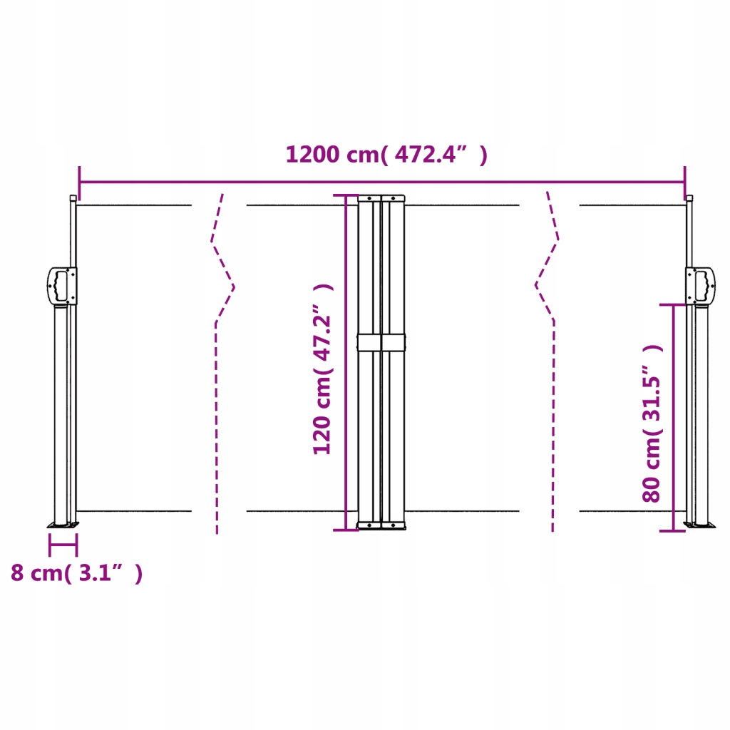 MARKIZA BOCZNA OSŁONA ROLETA PARAWAN NA TARAS BALKON OGRÓD 117x1200 cm