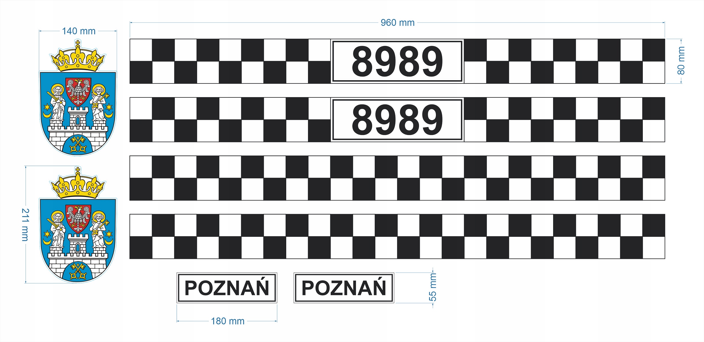 - 2 x Полоса «шахматка» с местом для номера лицензии на переднюю дверь