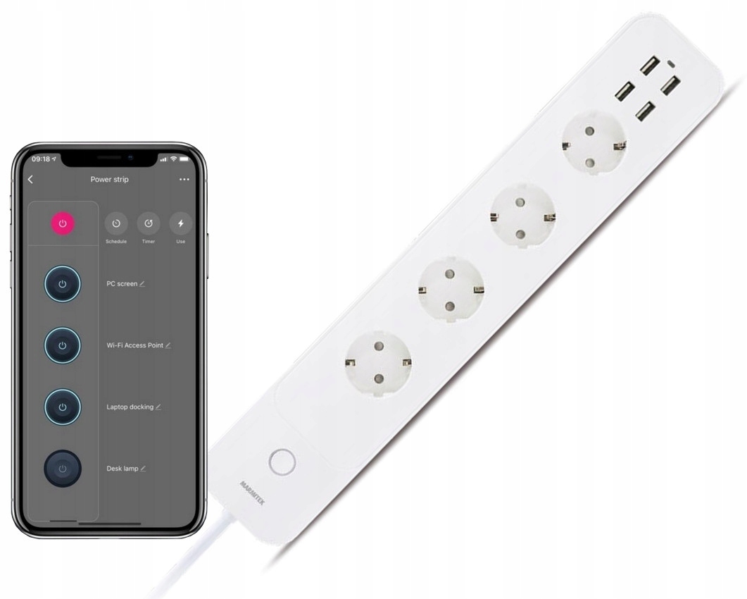 Управляйте питанием со своего телефона с помощью интеллектуального удлинителя Marmitek Power LI. Устройство позволяет контролировать потребление электроэнергии и имеет защиту от скачков напряжения. Благодаря возможности создавать режимы и графики работы, полоска будет автоматически включать или выключать розетку. Работает с другими интеллектуальными устройствами Marmitek.