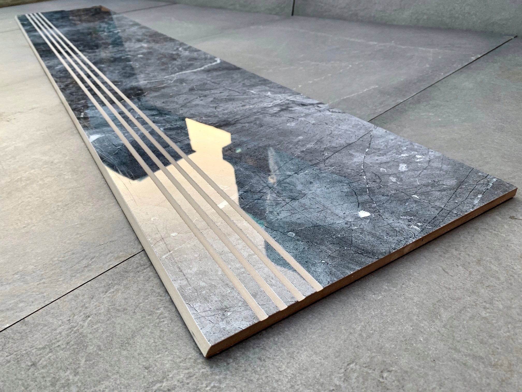МРАМОР НА ЛЕСТНИЦАХ - серый шаг 80x30 ГЛЯНЦЕВЫЙ