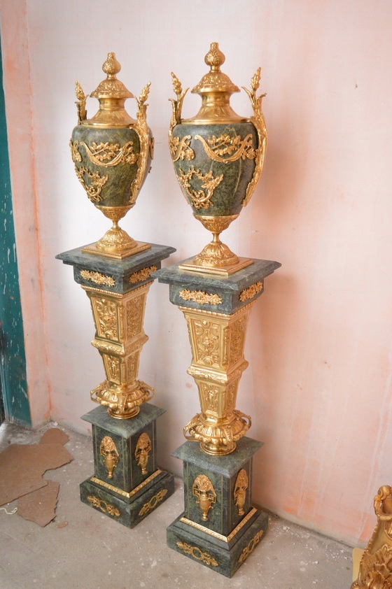 Здравствуйте, сегодня я хотел бы предложить Вам красивые, ОГРОМНЫЕ, массивные постаменты с вазами из мрамора и покрытыми бронзой.