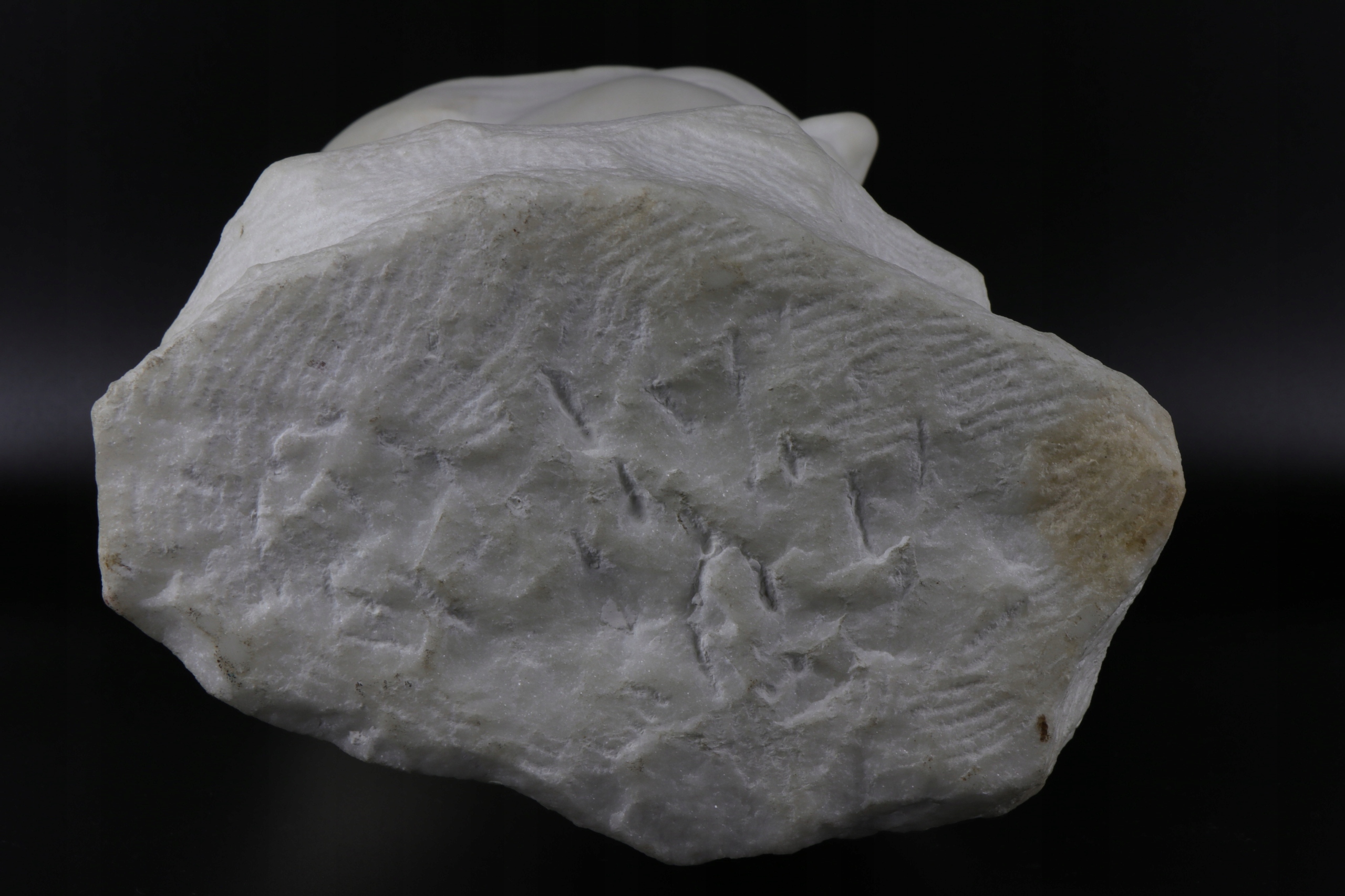 Прекрасно выполненная скульптура очень точно отражает оригинальную работу. Верхняя часть тщательно обработана, нижнее основание явно оставило следы резца скульптора.