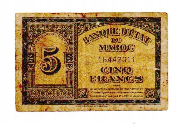 Марокко 5 Франкув 1943-44 РЕДИТЕЛЬНО