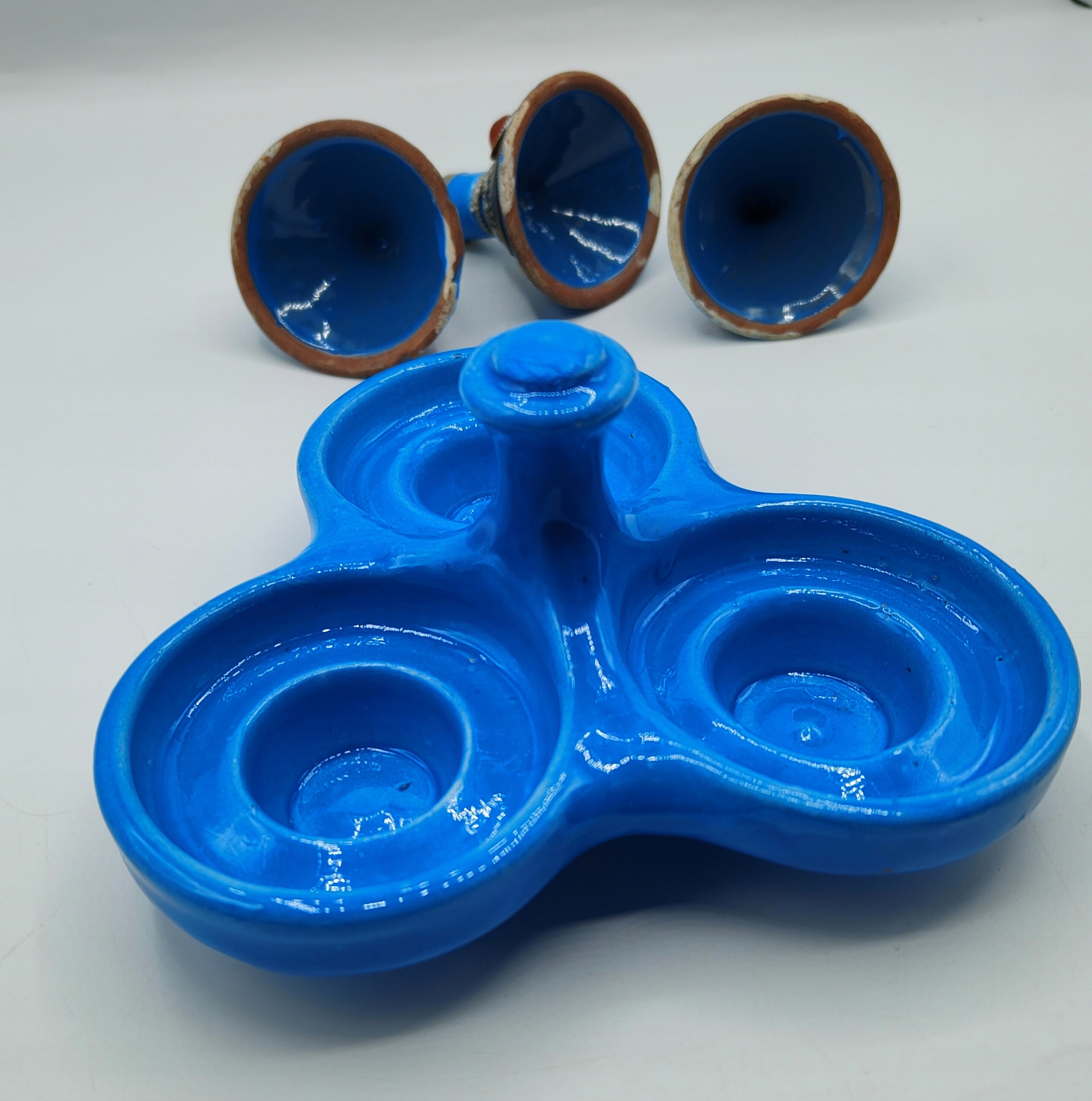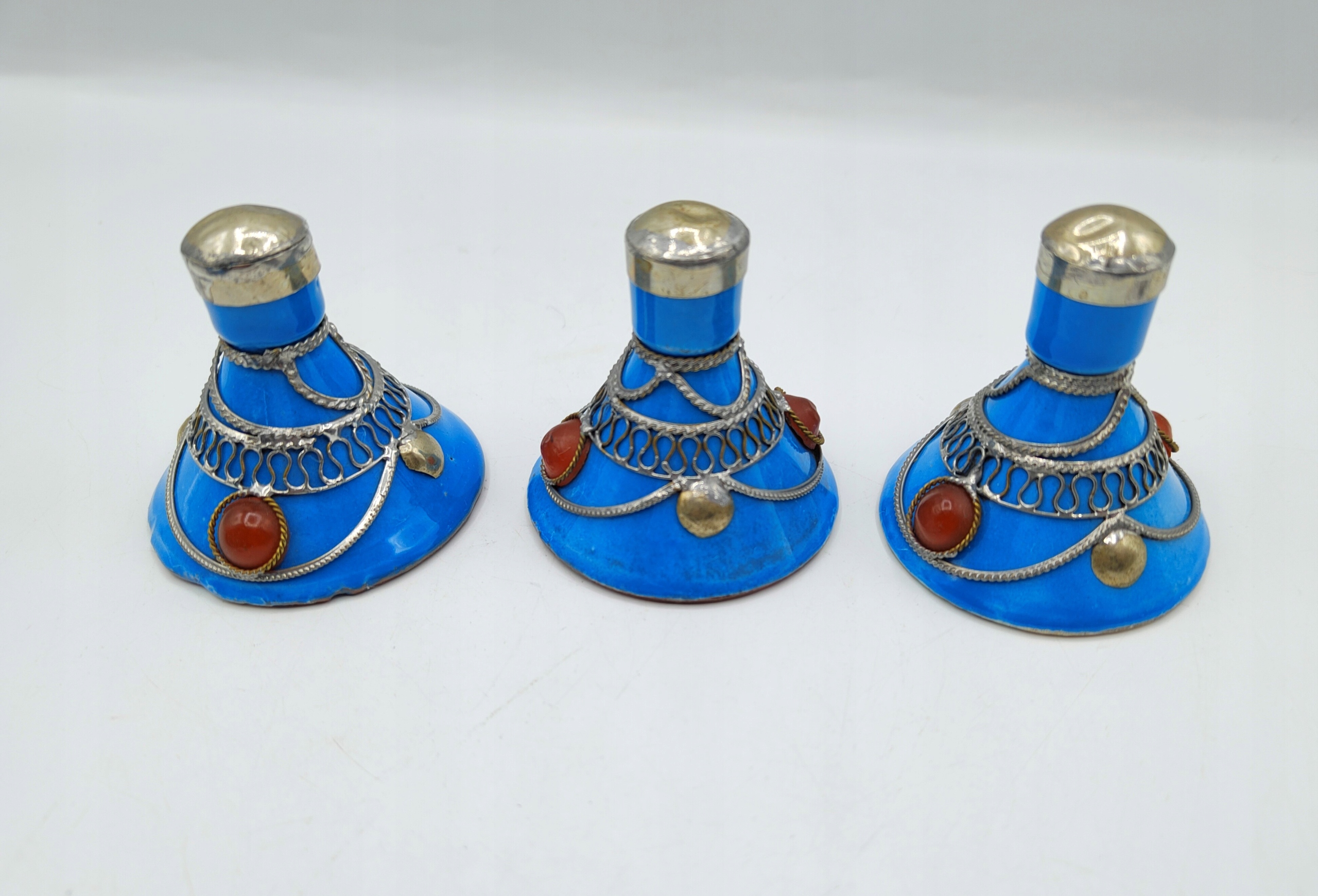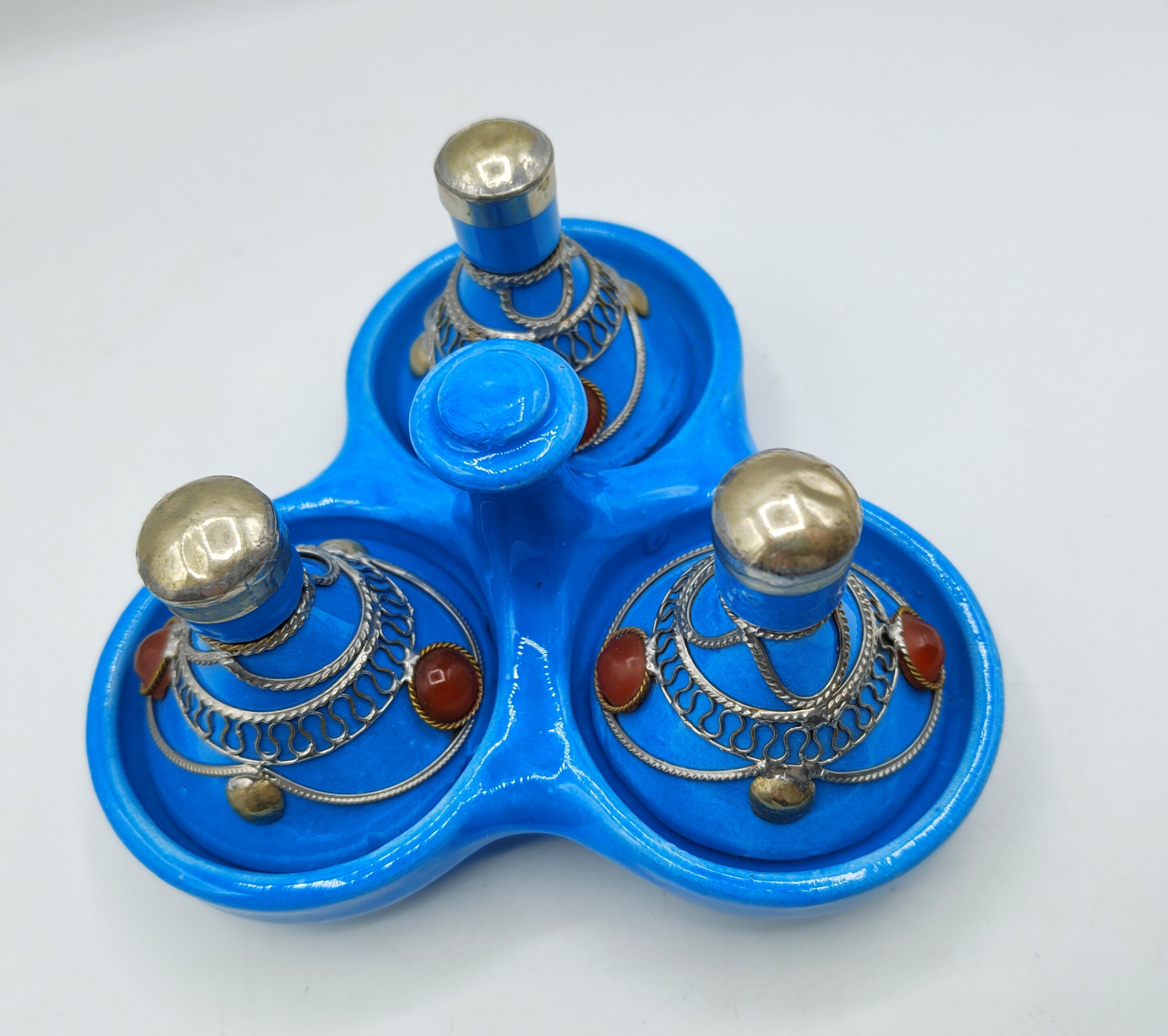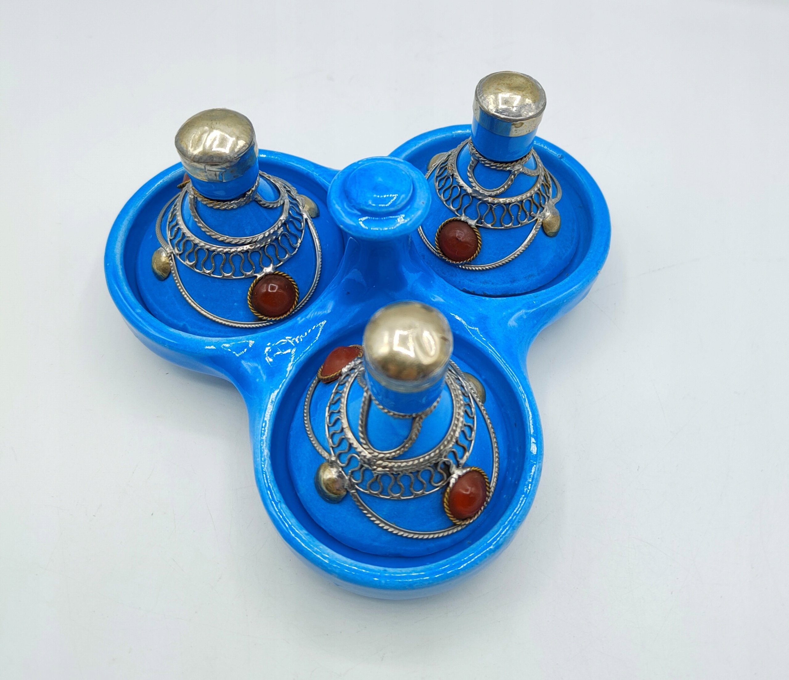 - Винтаж, МАРОККО, "tagine" КРАСИВЫЙ синий тройной контейнер для специй с крышками, кованый ВРУЧНУЮ с использованием нержавеющей стали и декоративных камней!