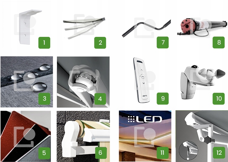 Мы предлагаем вам более 100 различных цветов ткани (в ремнях и одном -колоре). Все ткани являются производством авторитетной европейской компании. Они отличаются долговечностью цветов, высокой устойчивостью к световым и погодным условиям, сопротивлением разрыву под воздействием высокого напряжения, проницаемости воздуха при сопротивлении воде. Они сделаны из 100% акрила и покрыты тефлоновым агентом. Это создает отличный защитный барьер, и он также предотвращает уколы грязи в материал.