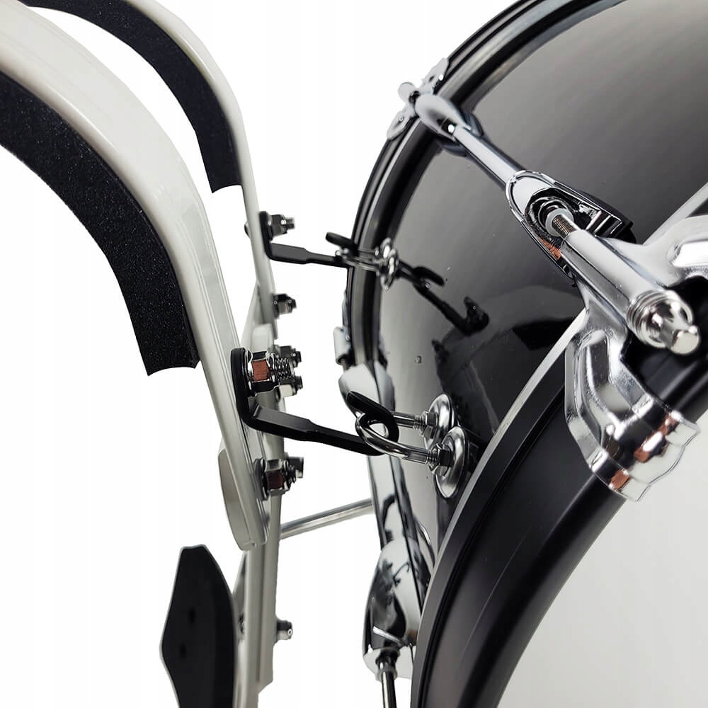 Черная отделка придает барабану элегантность и стиль. В комплект входит легкий алюминиевый держатель, что особенно важно во время длительных парадов и марширующих выступлений. Держатель предлагает возможность регулировки угла наклона и высоты подвеса, что позволяет идеально адаптироваться к фигуре музыканта.